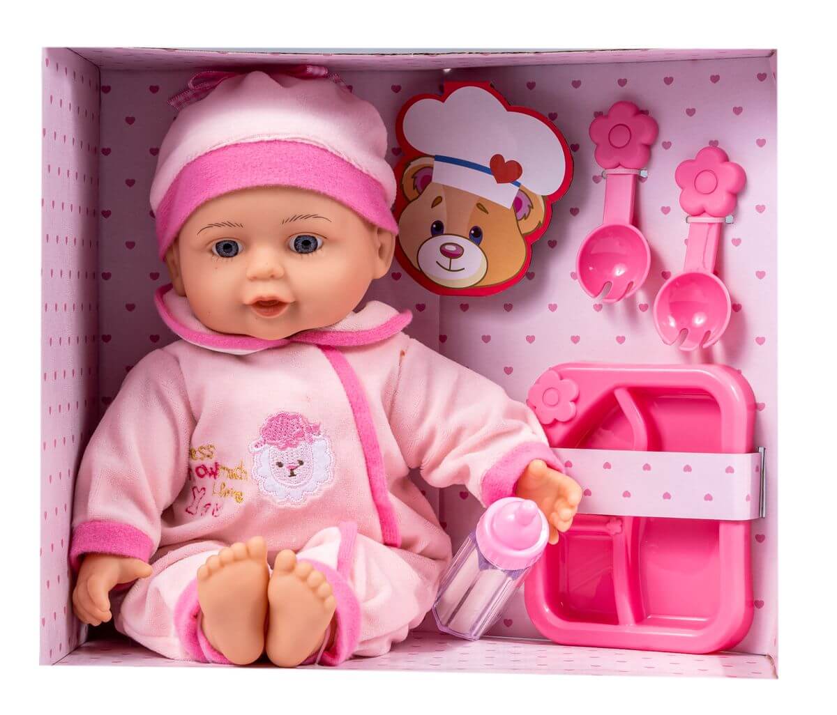 Zabawa w karmienie, to znakomita okazja do nauki zasad zdrowego odżywiania, a używanie akcesoriów rozwija małą motorykę oraz usprawnia precyzję ruchów. Podczas zabawy zachodzą silne procesy sensoryczne, które są niezbędne do prawidłowego rozwoju. Dziecko, podczas zabawy lalką odbiera w mózgu sygnały, które następnie przetwarza i odpowiada, odpowiednio reagując.