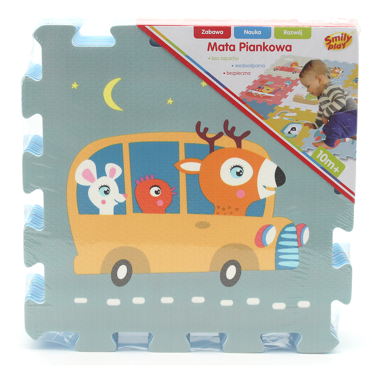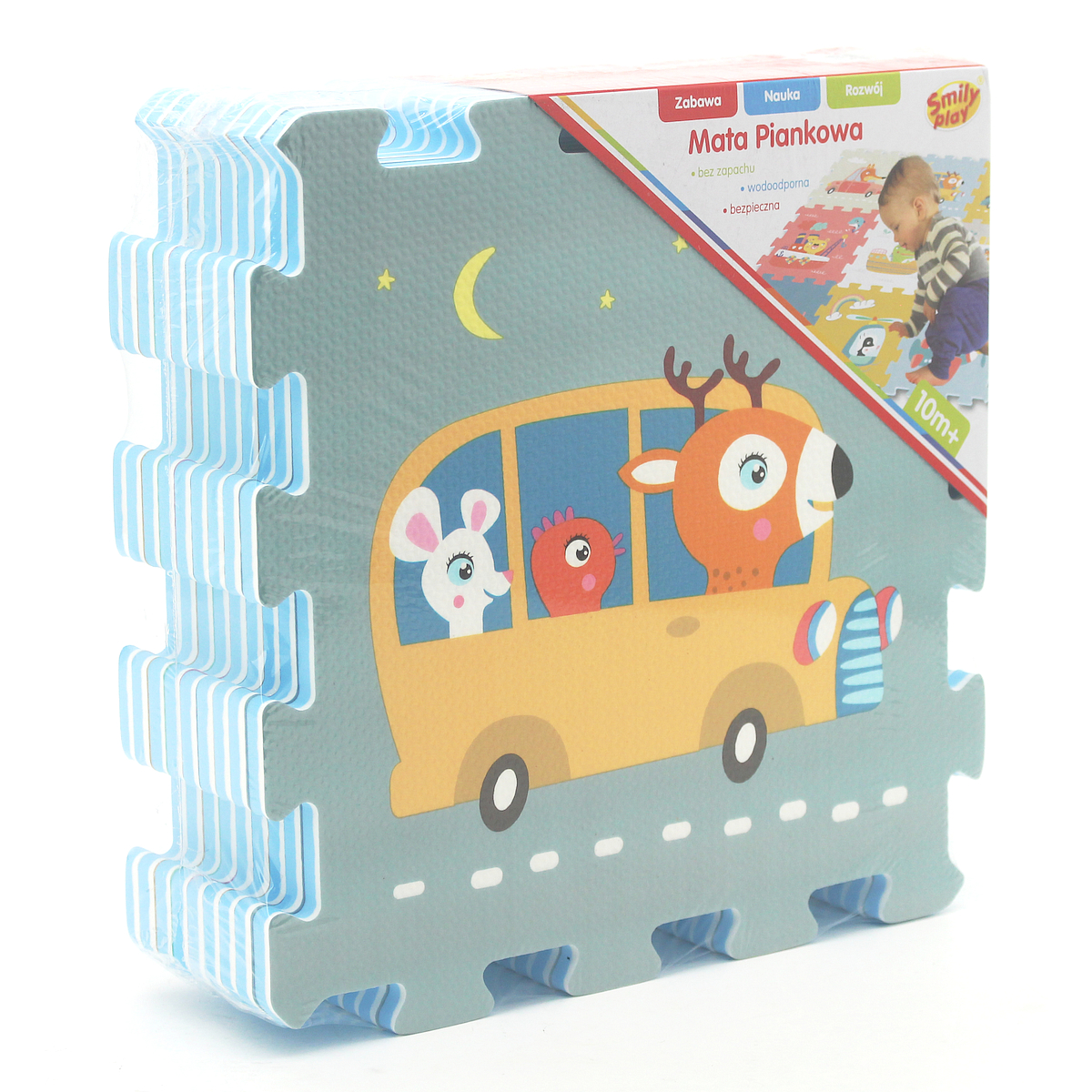 Układanka z pojazdami może być używana jako mata oraz jako puzzle do układania. Jest zrobiona z miękkiej pianki, przyjaznej w dotyku. Mogą też posłużyć jako podkładka przy innych zabawach czy drzemce. Zabawka uczy: spostrzegawczości, rozpoznawania kolorów i kształtów, budowania figur przestrzennych, zabawy z wyobraźnią. Pomysły jak można bawić się puzzlami: połącz z dzieckiem wszystkie elementy i opowiedz, co się na nich znajduje. Zbuduj z puzzli figury przestrzenne, np. kostkę lub pudełko i wymyślcie wspólnie, jak można się nimi bawić. Zrób z nich stolik. Jest wiele możliwości zabawy, ogranicza was jedynie wasza wyobraźnia.