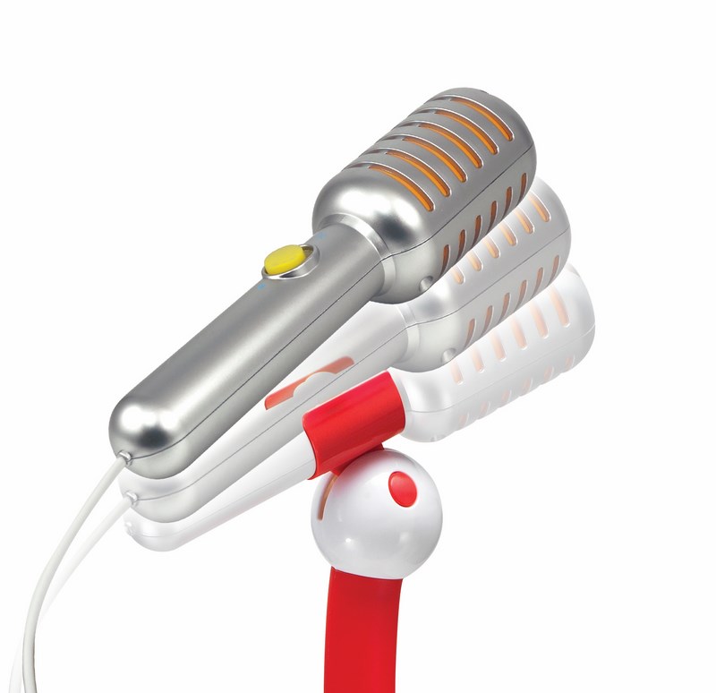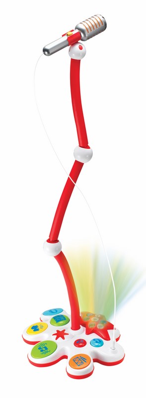 W podstawie znajduje się głośnik oraz przyciski do efektów świetlno-dźwiękowych. Rozwija zdolności muzyczne dziecka, uczy rytmu i zapewnia wiele godzin wspaniałej zabawy. Dzięki wejściu jack można do niego podłączyć również urządzenie do odtwarzania swojej ulubionej muzyki (kabel należy nabyć osobno). Każdy maluch może zostać samodzielnym wokalistą lub członkiem większej grupy muzycznej.