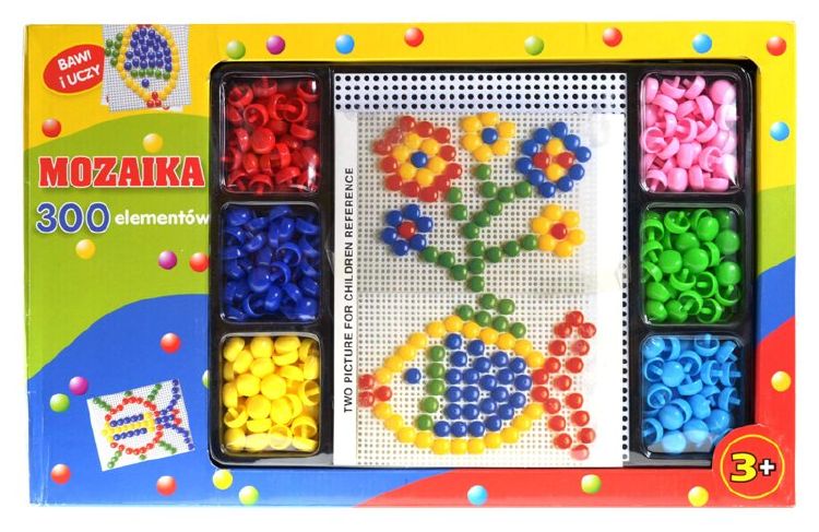 Stwórz swoją własną mozaikę z kolorowych koralików! Zabawa w tworzenie różnorodnych kompozycji rozwija zdolności manualne, pobudza wyobraźnię i twórcze myślenie!Zawartość zestawu: