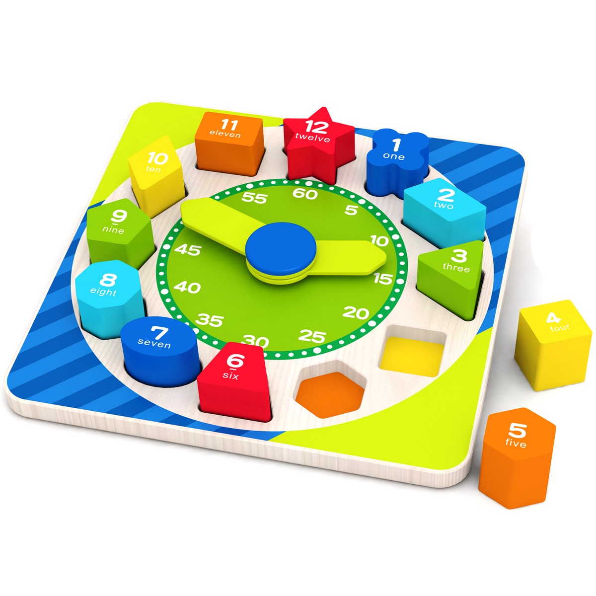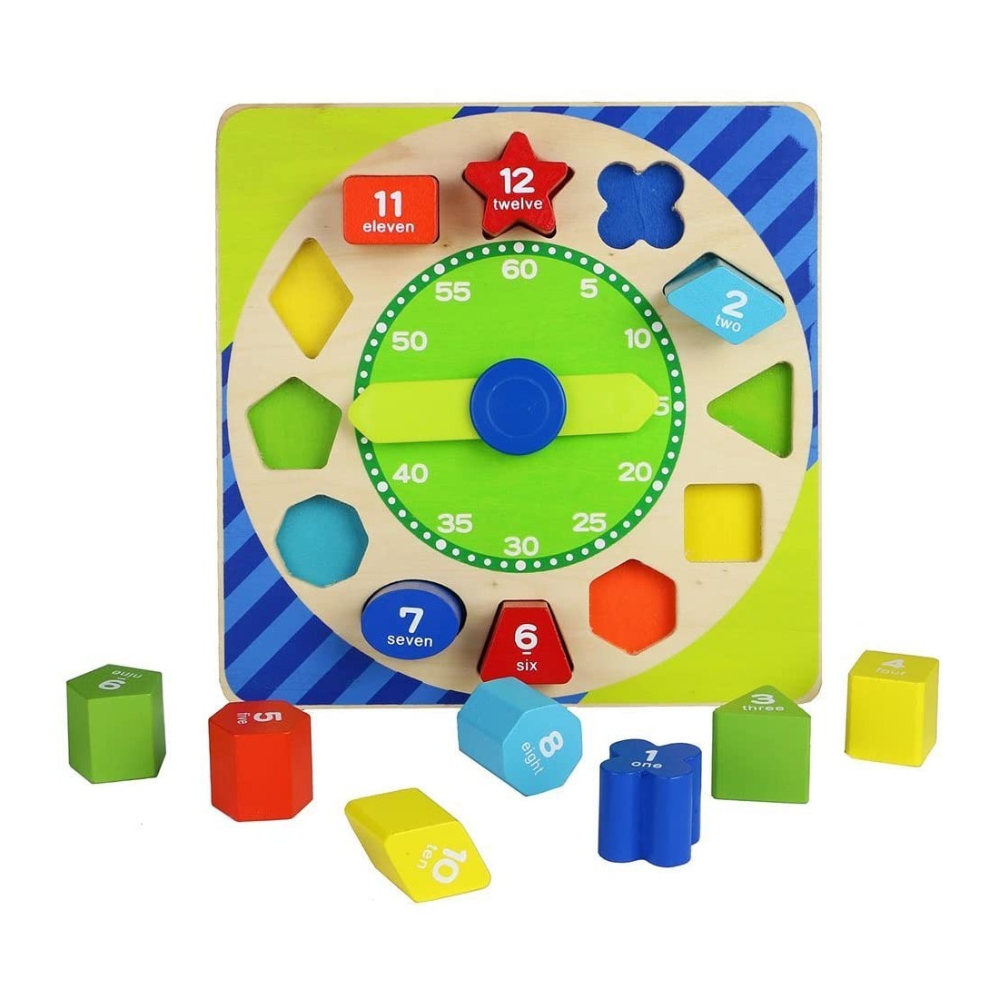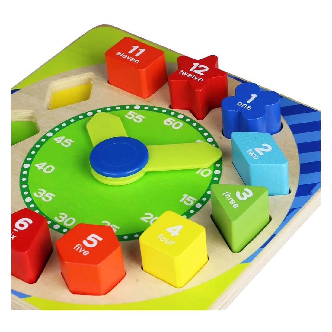 Drewniany kolorowy zegar – sorter uczy rozróżniania kształtów i nazywania kolorów, znajomości cyfr i liczb w zakresie od 1 do 12, a także ich kolejności. Później można przejść do nauki godzin, a nawet poczucia czasu. Ma ruchome duże wskazówki. To edukacyjna zabawka, która poprzez zabawę pomoże dziecku zdobywać nowe umiejętności oraz rozwijać te wcześniej zdobyte. Ćwiczy spostrzegawczość i pamięć. To świetna gimnastyka dla mózgu. Dzięki wyciąganym elementom pomoże rozwinąć zdolności manualne oraz wyobraźnię przestrzenną Twojego dziecka. Pomocny w nauce rozpoznawania kolorów, kształtów i pojęcia czasu.Wykonany jest z wysokiej jakości drewna. Nie ma ostrych kształtów. Do produkcji zabawki użyto nietoksycznych farb.
