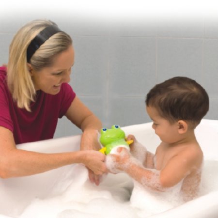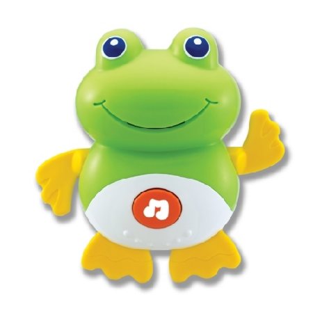 Radość podczas kąpieli! Żabka Chlapu Chlap to zabawka wodna z bateriami! Żabka pływa w wodzie i gra melodyjki. Jeśli zamoczymy ją całkowicie, przestaje grać, ale wystarczy delikatnie otrzepać ją z wody i znowu można słuchać wesołych dźwięków. Aby żabka pływała, wystarczy nakręcić jej łapki.