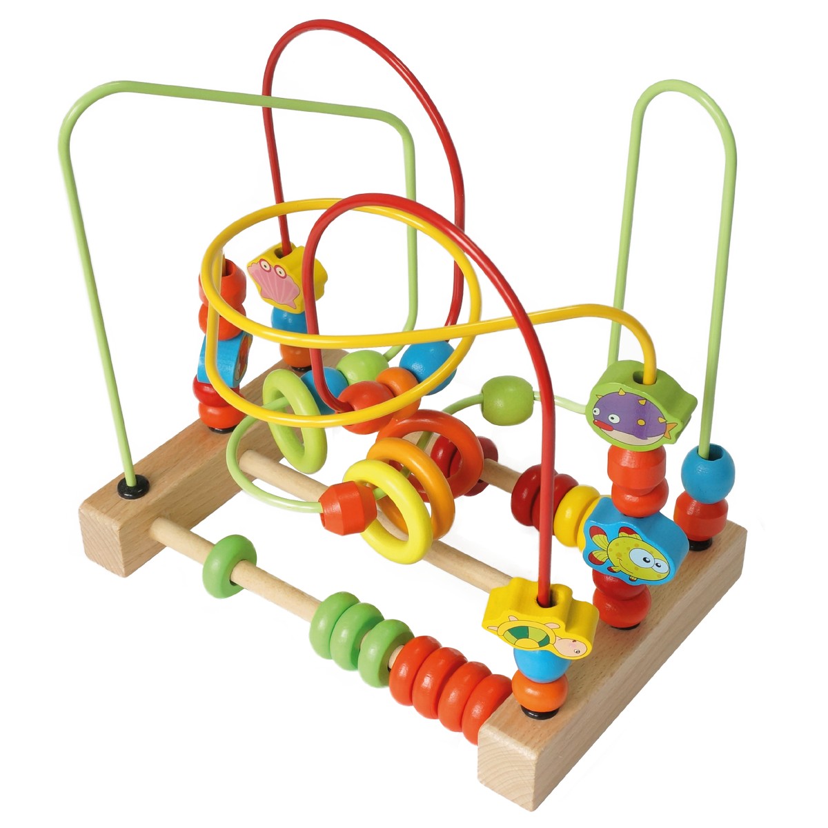 Barwne koraliki z obrazkami pomogą w nauce kolorów. Posłużą także przy zabawie rozwijającej spostrzegawczość oraz umiejętność znajdowania podobieństw i różnic przedmiotów. Przesuwanie koralika po torze ćwiczy cierpliwość oraz sprawność ręki. To także okazja do wzmocnienia chwytności paluszków. Akwarium ma w podstawie kolorowe liczydło. Pomoże ono w nauce liczenia, prostych zadaniach matematycznych oraz w tworzeniu zbiorów.
