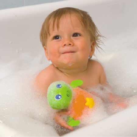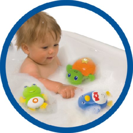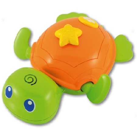 Żółw Chlapu Chlap to zabawka wodna z bateriami! Pływa w wodzie i gra melodyjki. Jeśli zamoczymy go całkowicie, przestaje grać, ale wystarczy delikatnie otrzepać żółwia z wody i znowu można słuchać wesołych dźwięków. Aby żółw pływał, wystarczy nakręcić łapki.