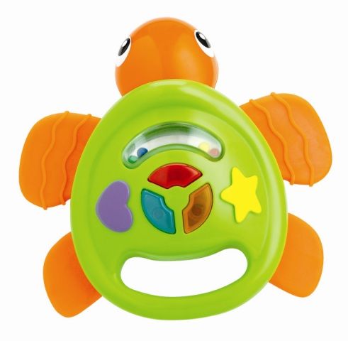 to wielofunkcyjna grzechotka wspomagająca koordynację ruchowo-słuchową, a także wzrokowo-ruchową. Kształtem przypominajaca żółwia.