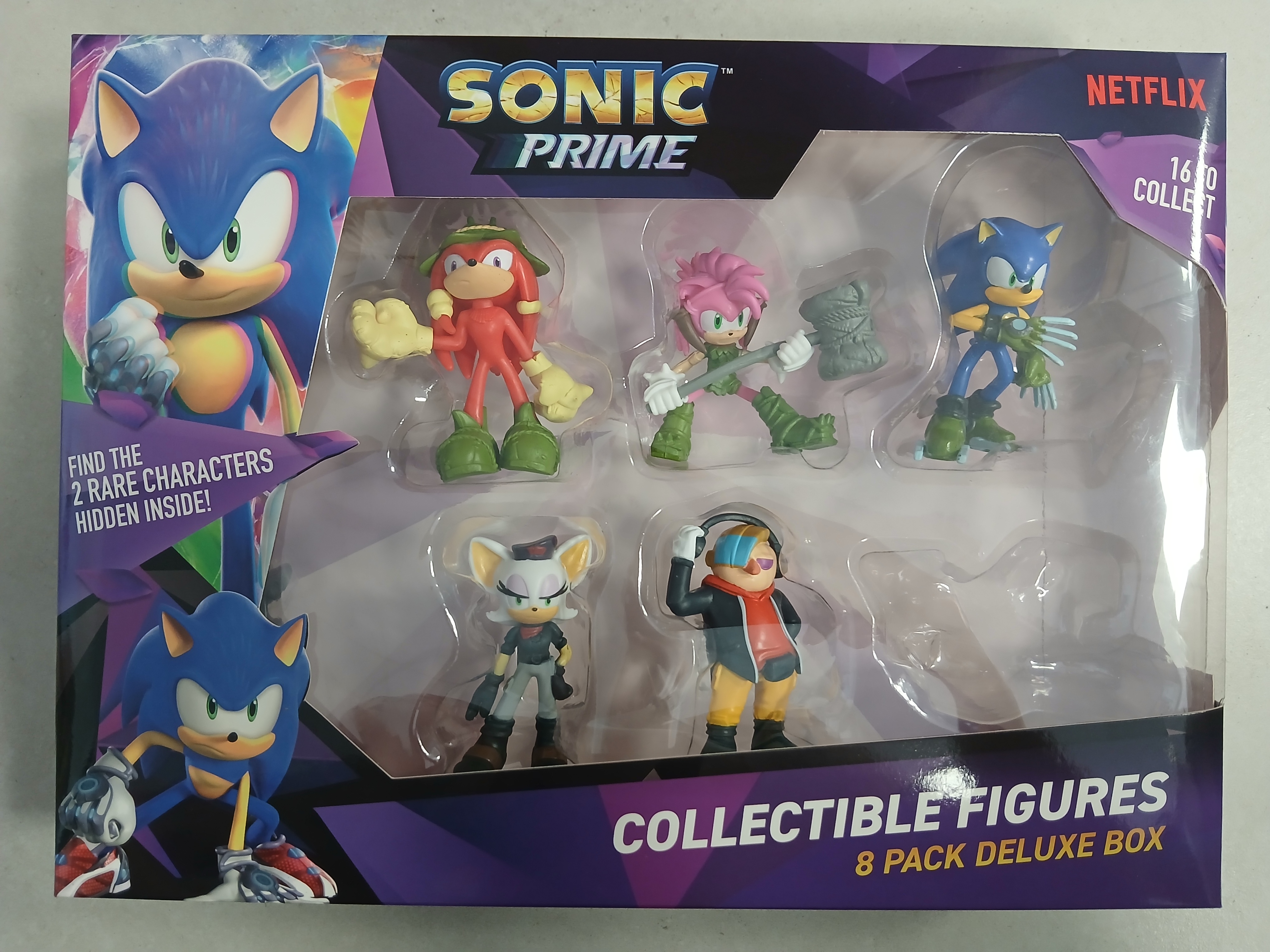Sonic Prime zestaw figurek 8-pak Zestaw B: Dr. Don't, Knuckles, Amy Rose, Sonic, Rebel Rouge, Sonic Shadow, Froggy - brak figurki