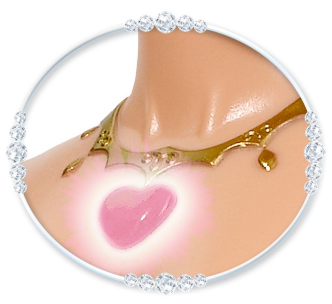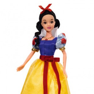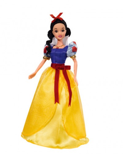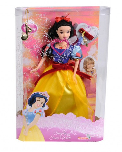 Elegancka Królewna stworzona dla dziewczynek, które lubią świat baśni i magicznych postaci. Posiada długie, czarne włosy, przyodziana w jej słynną sukienkę z Królewny Śnieżki. Dodatkowo po naciśnięciu serduszka w naszyjniku lalka zaśpiewa piosenkę ze swojego filmu. Dodatkowo w zestawie znajduje się bransoletka z dekoracją, która dziewczyna może sobie założyć na nadgarstek.