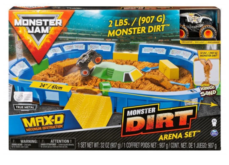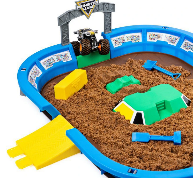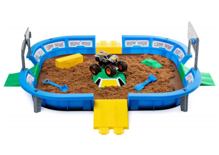 Monster Jam Arena to niezwykły zestaw, który pozwala na zabawę niczym na prawdziwej Arenie Monster Jam. Ułożony stadion zapełnij piaskiem kinetycznym i twórz trasy oraz przeszkody, które później możesz niszczyć. Piasek kinetyczny nigdy nie wysycha i łatwo go posprzątać. Do zestawu dołączony jest metalowy samochód Monter Truck Max-D.