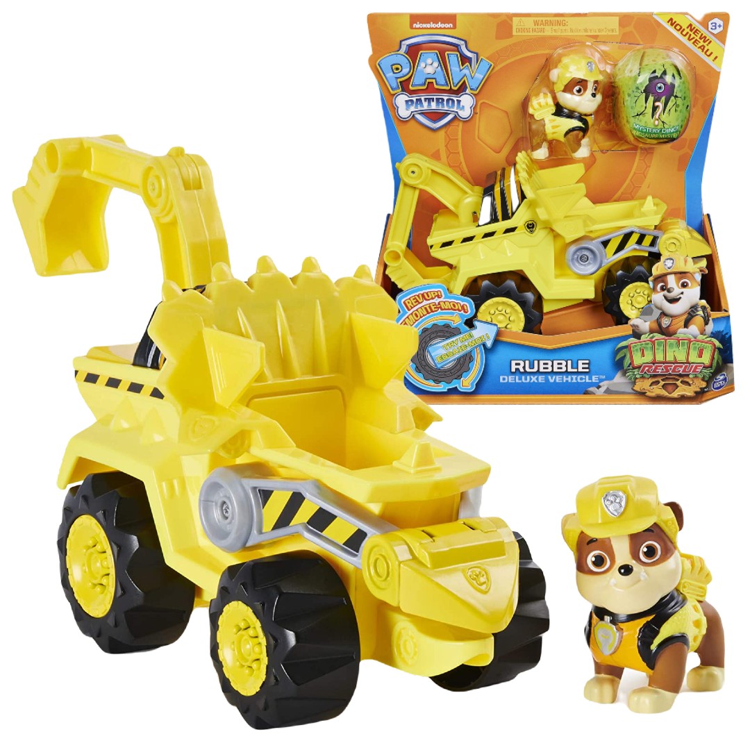 Wyrusz na ratunek z drużyną przesympatycznych szczeniaków. Pojazdy z serii Dino Rescue inspirowane są dinozaurami i są ozdobione detalami z nimi związanymi. Zestaw zawiera wyjątkowy pojazd, figurkę szczeniaka i minifigurkę tajemniczego dinozaura. Koparka posiada duże koła oraz ruchome ramię. Figurkę pieską można wyjąć z pojazdu i bawić się nią osobno. Rubble ubrany jest w żółty kubraczek z plecakiem oraz żółtą czapkę. Rozpakuj tajemniczą figurkę dinozaura i ruszaj na ratunkowe misje. Zbierz wszystkie figurki i pojazdy z serii Dino Rescue, aby tworzyć własne misje ratunkowe! Zestaw z całą pewnością spodoba się każdemu miłośnikowi perypetii grupy bohaterskich szczeniaków z serii Psi Patrol.