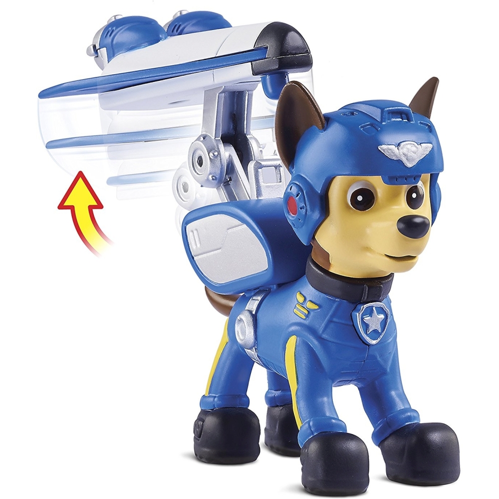 Figurka ma ruchomą głowę i specjalny przycisk - odznakę na obroży, który aktywuje odrzutowiec umieszczony na grzbiecie pieska.