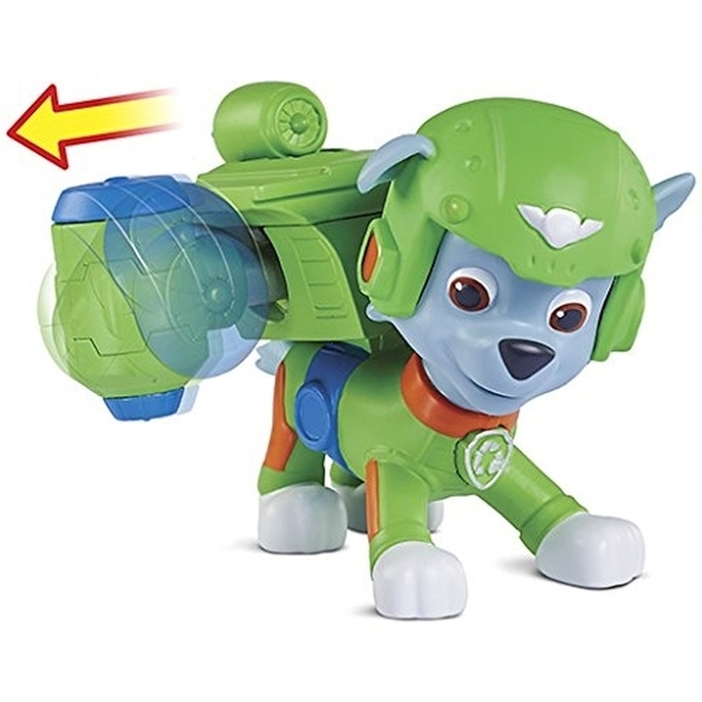 Figurka ma ruchomą głowę i specjalny przycisk - odznakę na obroży, który aktywuje odrzutowiec umieszczony na grzbiecie pieska, po naciśnięciu medalionu silniki obracają się, zmieniając kierunek lotu.