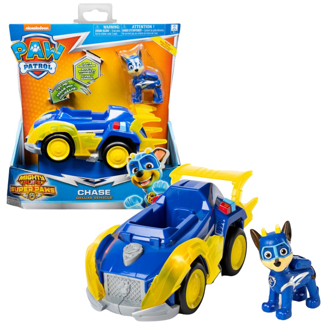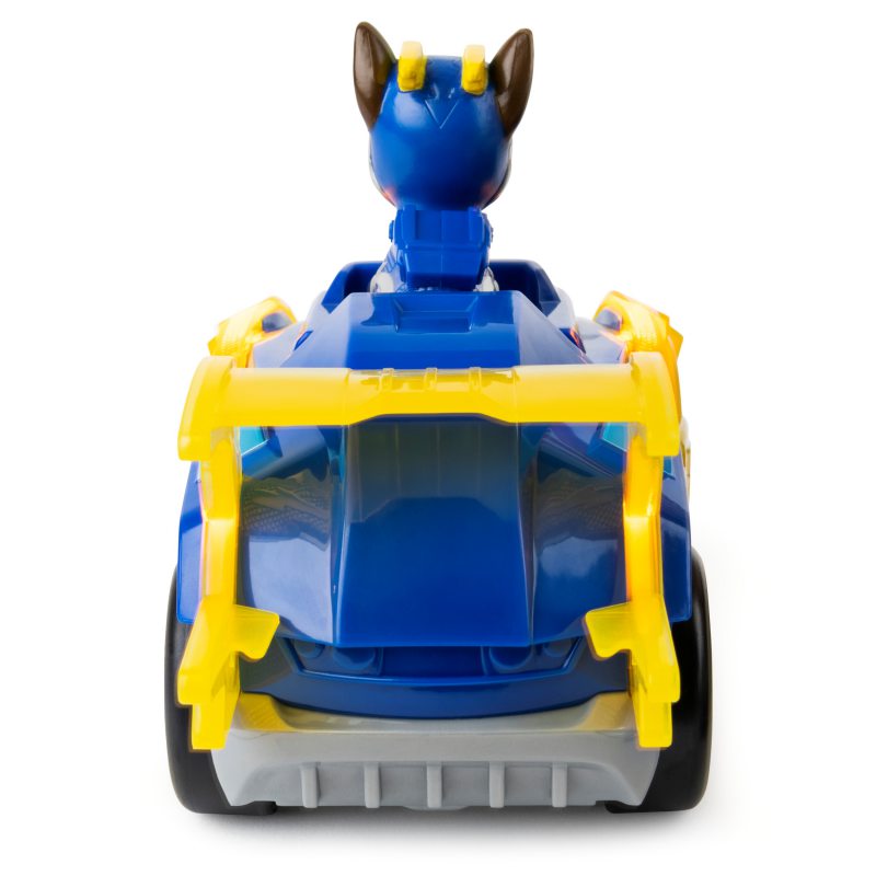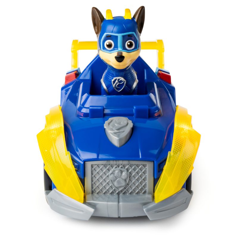 Wyrusz na ratunek fantastycznym kosmicznym pojazdem policyjnym wraz ze swoim przyjacielem Chasem. Pojazd posiada 4 ruchome koła, które pozwolą na bezproblemowe poruszanie się po powierzchniach płaskich. Dodatkowo wóz wyposażono w niesamowity efekt świetlny i dźwiękowy, uruchamiany za pomocą przycisku znajdującego się z przodu pojazdu. Pojazd wydaje 4 różne odgłosy, a półprzezroczyste elementy są podświetlane. Zestaw z całą pewnością spodoba się każdemu miłośnikowi perypetii grupy bohaterskich szczeniaków z serii Psi Patrol. Figurka Chase'a ubrana jest w niebieski kubraczek.
