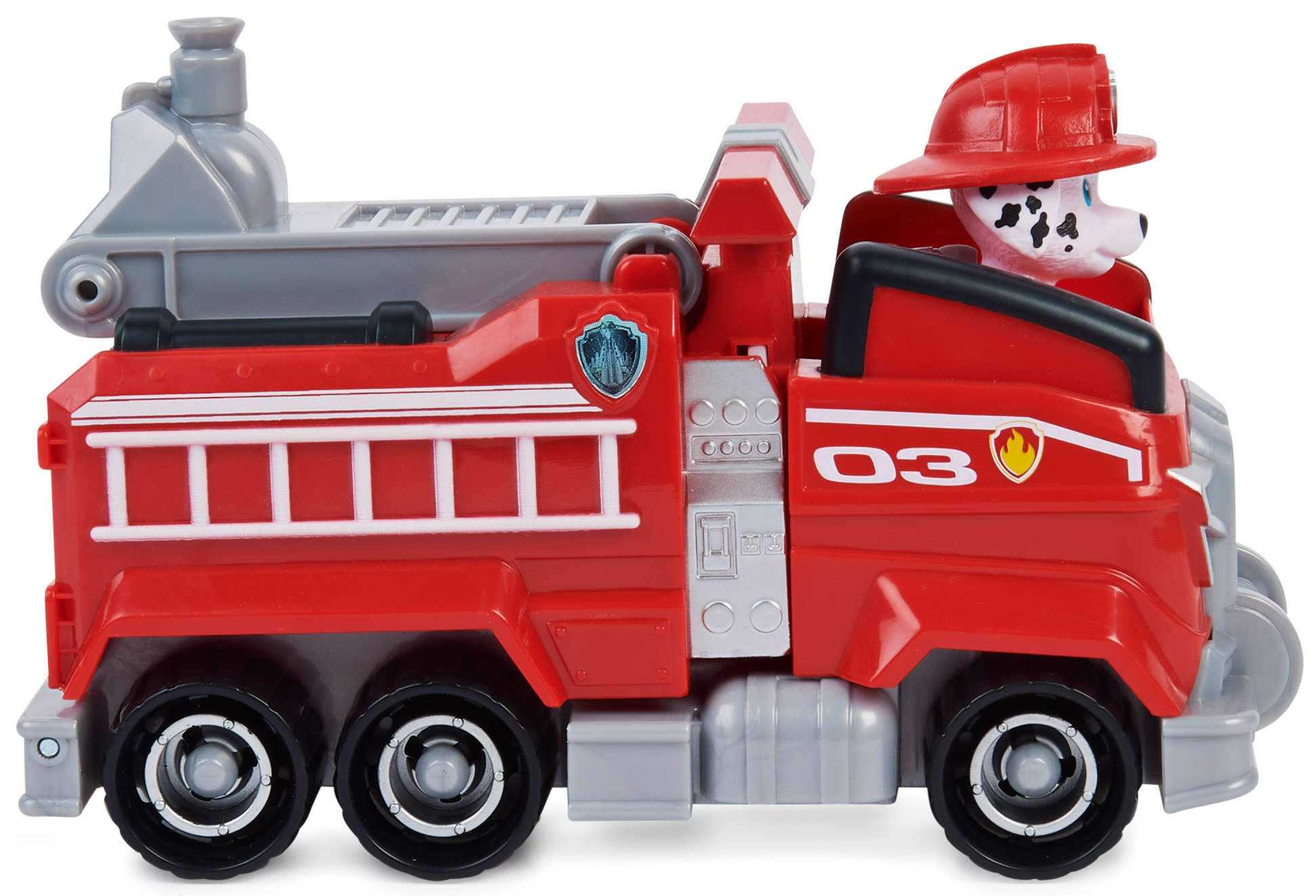 Wyrusz na ratunek z drużyną przesympatycznych szczeniaków. Zestaw zawiera wyjątkowy pojazd oraz figurkę szczeniaka. W zestawie znajduje się również wóz strażacki Marshall'a z miejscem dla figurki oraz wysuwaną wyrzutnią i pociskiem. Figurkę pieską można wyjąć z pojazdu i bawić się nią osobno. Marshall ubrany jest w charakterystyczny czerwony strażacki strój, hełm oraz plecak.. Zestaw z całą pewnością spodoba się każdemu miłośnikowi perypetii grupy bohaterskich szczeniaków z serii Psi Patrol.