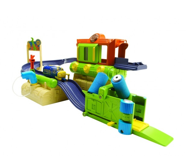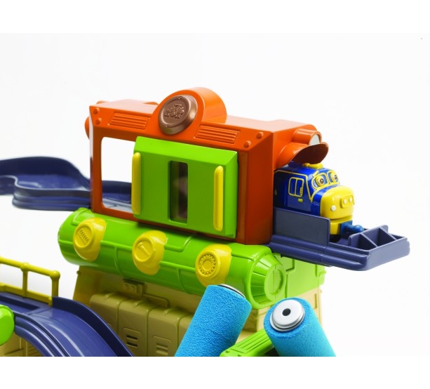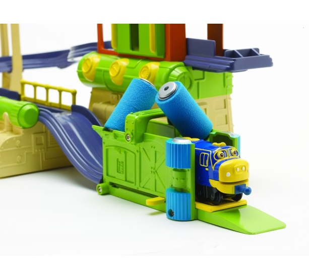 Warsztat i myjnia to idealne miejsce dla każdej lokomotywy, która wymaga naprawy lub odświeżenia. Zestaw będzie niezwykle atrakcyjnym elementem kolekcji kolejek ze znanego wszystkim maluchom serialu Stacyjkowo. Najpierw lokomotywa przejeżdża przez skaner, następnie nachylona pod odpowiednim kątem zostaje naprawiona, a na końcu zjeżdża do myjni. Teraz gotowa jest do drogi!