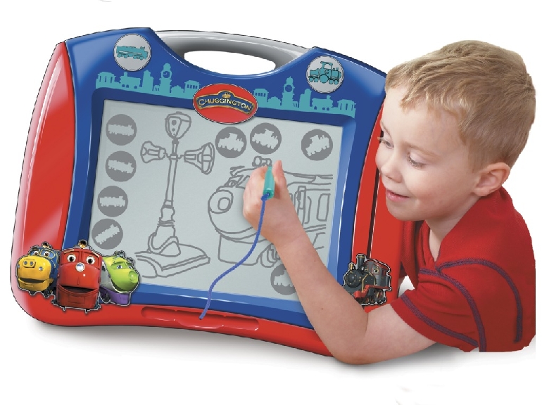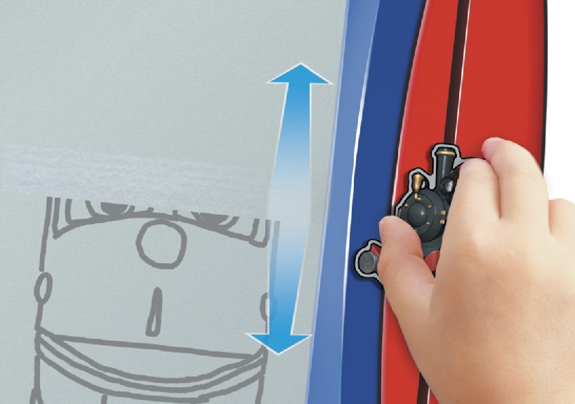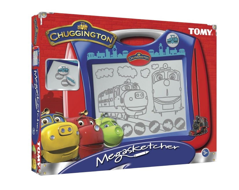 Dla wszystkich wielbicieli bajki Stacyjkowo wspaniały znikopis. Nie potrzeba farby ani papieru, wystarczy Megasketcher, na którym można rysować wiele razy za pomocą magicznego ołówka i 2 dużych szablonów pieczątek. Rysunek wymaże się samoczynnie, kiedy ściągniesz na dół suwak i następnie go puścisz. Automatycznie zmaże arcydzieła Twojego szkraba by znów można zacząć rysowanie od nowa.