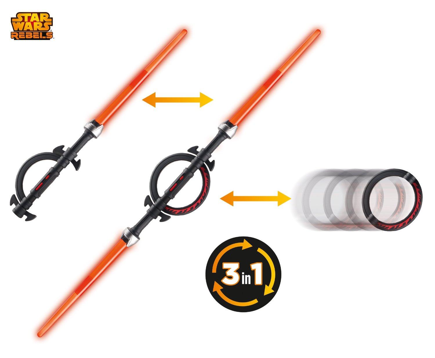 Wkrocz w sam środek akcji i przygód w świecie Gwiezdnych wojen! Odkryj ekscytujące historie opisujące walkę Dobra ze Złem we wszechświecie pełnym bohaterów, złoczyńców i kosmitów. Wciel się w rolę ulubionej postaci Star Wars Rebels, tylko nie zapomnij zabrać ze sobą miecza Inkwizytora! W każdej chwili możesz go rozdzielić na dwa odrębne miecze i dysk do rzucania we wrogów. Teraz decyzja, po której stronie staniesz zależy od Ciebie. Bądź niepokonany w odległej galaktyce! Miecz po złożeniu ma aż 91 cm długości!