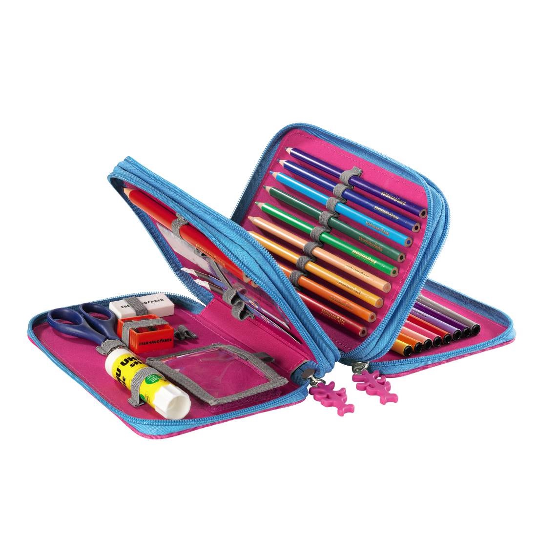 Piórnik jest bardzo pojemny – ma miejsce na aż 43 przybory szkolne. Znajdziesz w nim markowe, wysokiej jakości akcesoria:
