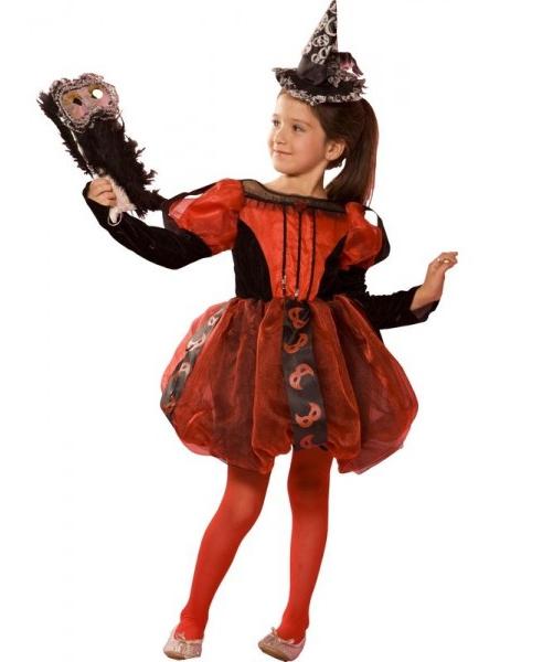 W skład stroju wchodzi bogato zdobiona sukienka z tiulem i ozdobami.