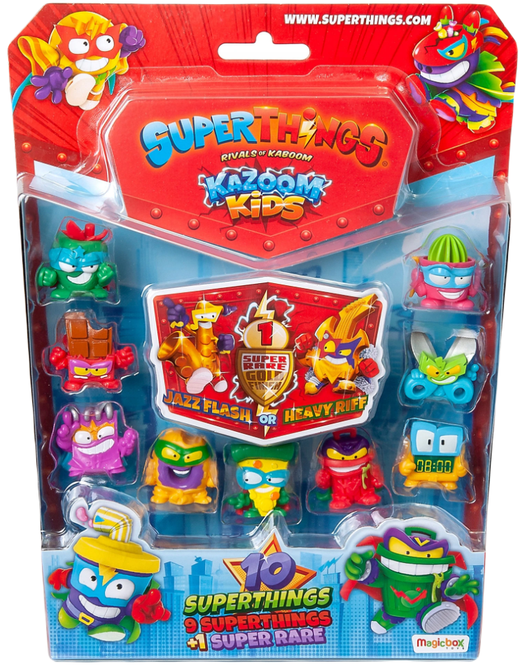To gratka dla fanów SuperZings! W tym blistrze znajduje się aż 10 różnych figurek SuperZings, a wśród nich ukrywa się jedna superrzadka postać w kolorze złotym.