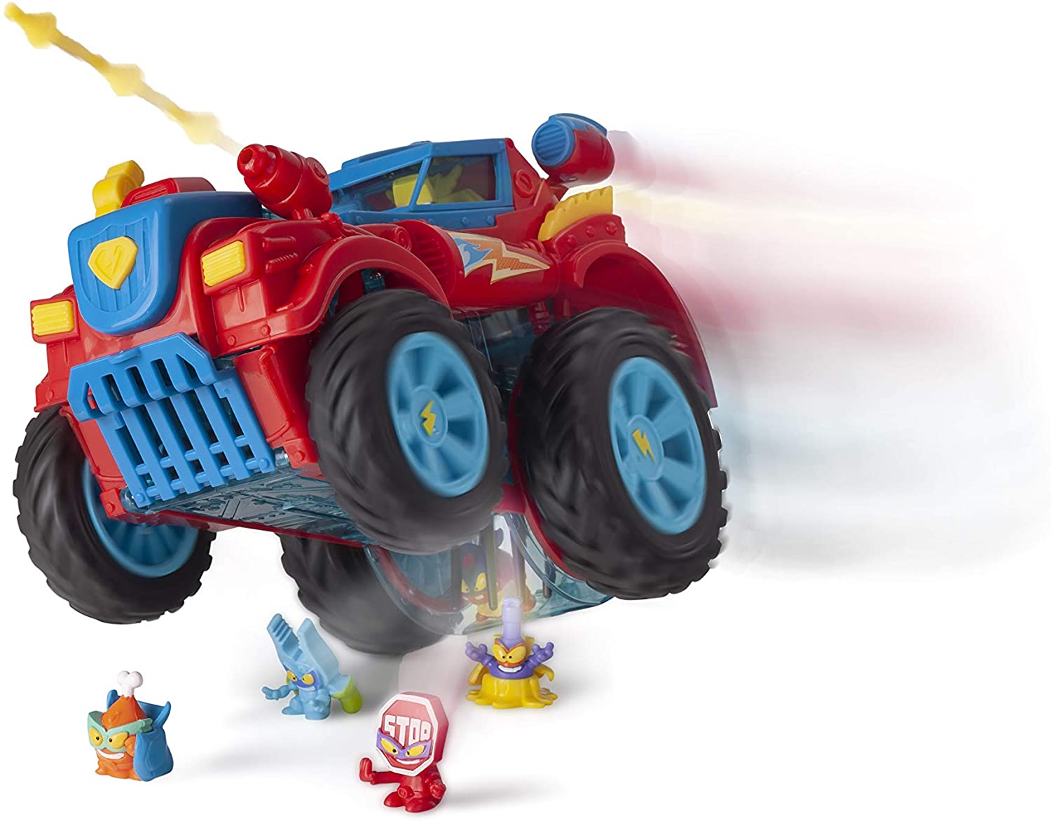 Monster Roller Truck posiada gumowe koła, przednie koła są mniejsze od tylnych, co powoduje, że pojazd wygląda niezwykle ciekawie. W zestawie znajduje się wyrzutnia, która zapewni świetną zabawę. Dzięki otwieranym drzwiom do kabiny możesz usadzić najlepszych kierowców. Zderzak pojazdu pomoże wyrzucić złoczyńców daleko! Ścigaj złoczyńców, łap ich i nie pozwól im uciec! W zestawie znajdują się dwie ekskluzywne postacie SuperZings: Doc Whistle i Waltie, najbardziej doświadczeni kierowcy Monster Roller Truck.