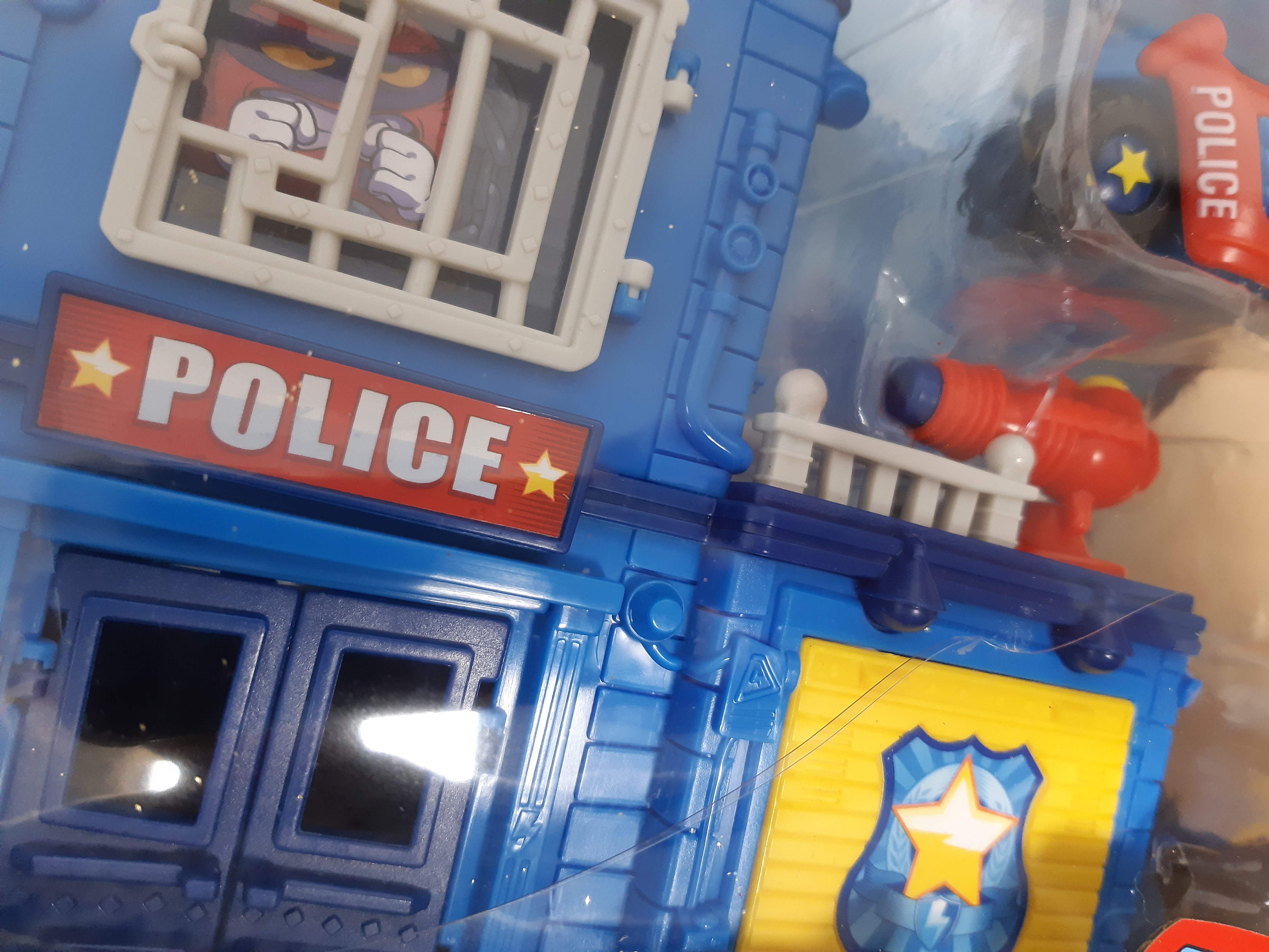 Posterunek policji ma postać piętrowego budynku, w którym znajduje się więzienie. Superzłoczyńcy mogą do niego trafić przez tajną pułapkę – zapadnię lub z niego uciec przez sekretne wyjście. W budynku policji jest też garaż na załączony policyjny motocykl służący do patrolowania okolicy oraz strzelająca armatka z pociskami. W zestawie znajdują się dwie ekskluzywne, kolekcjonerskie figurki SuperZings – policjant Captain Justice i złoczyńca Chuckchain (te postacie nie są dostępne w innych zestawach).