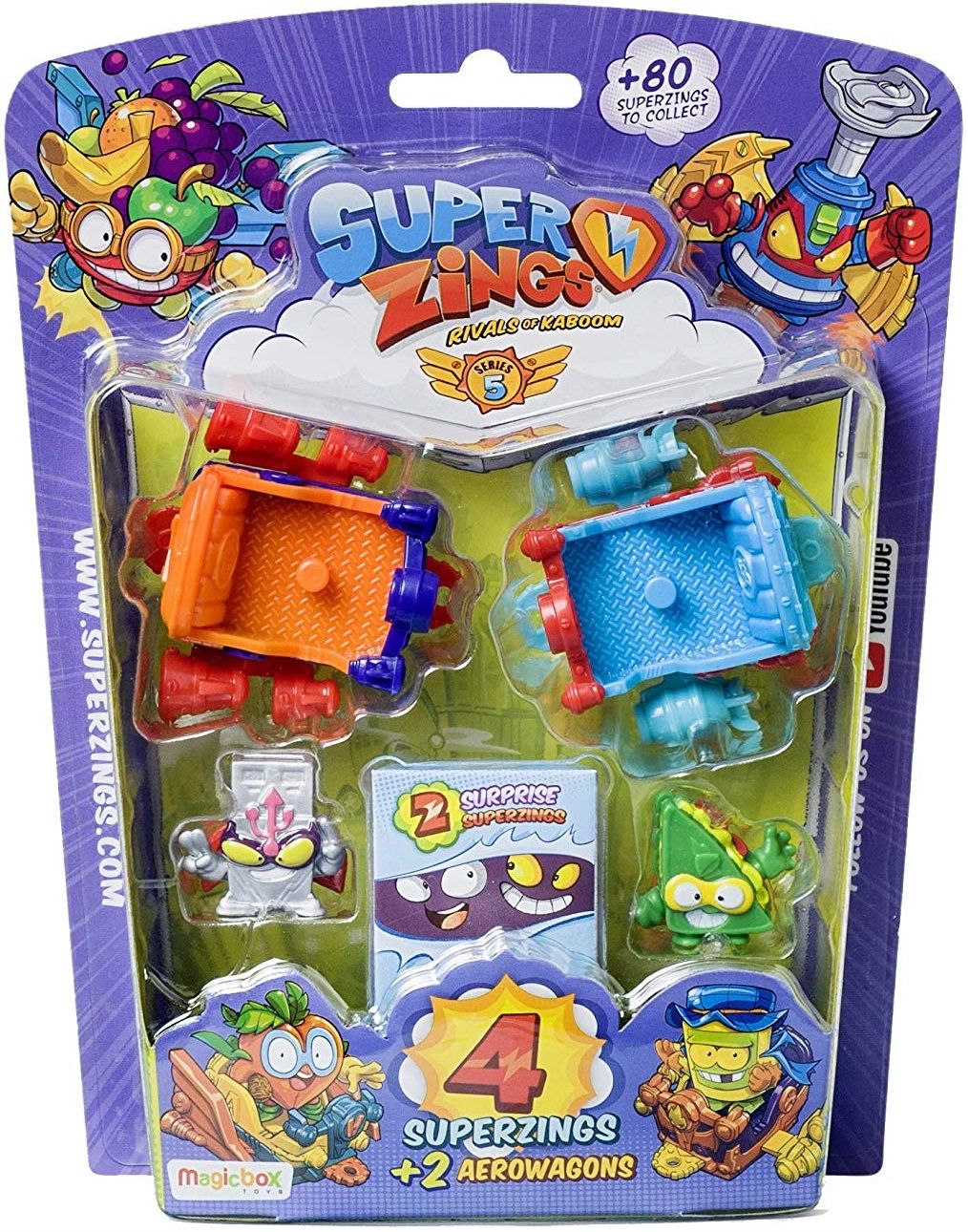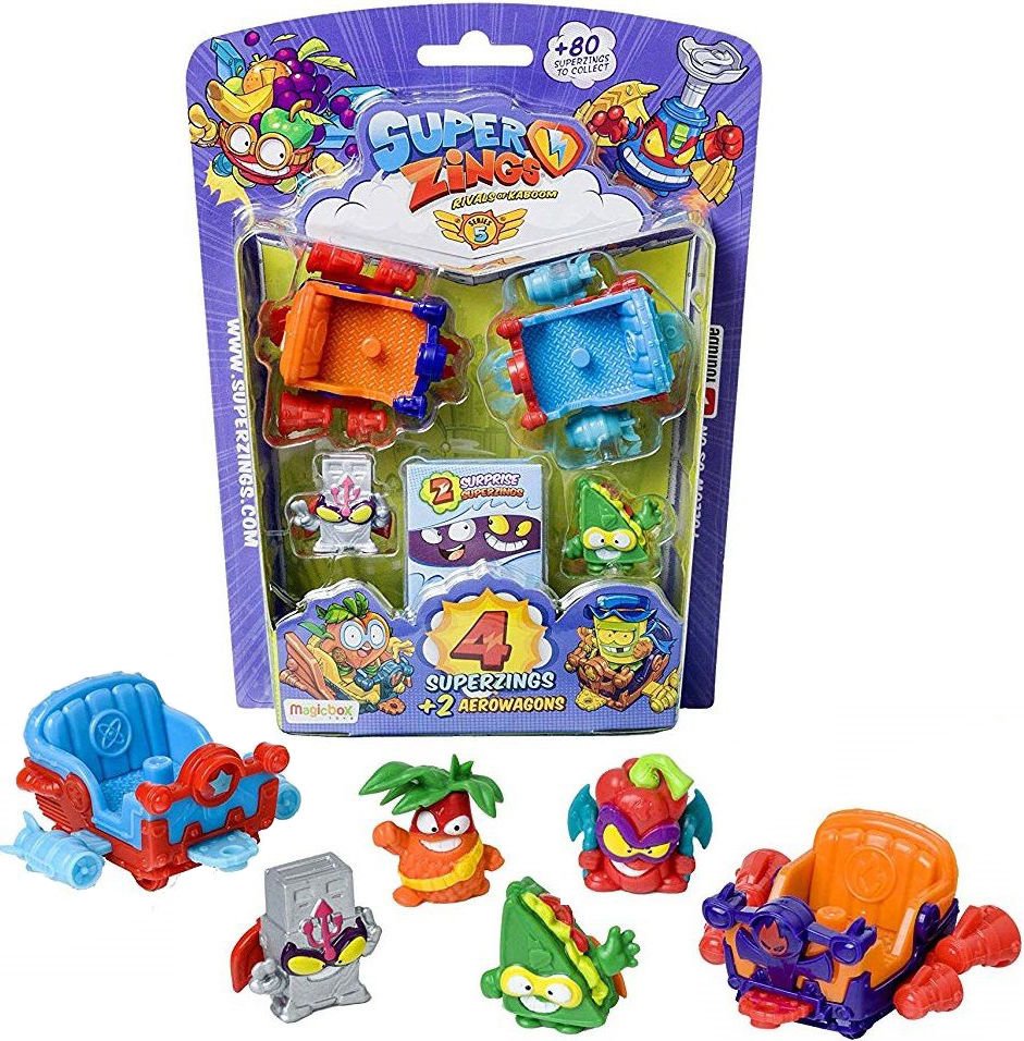 Ten zestaw pozwoli szybko uzupełnić własną kolekcję SuperZings z serii 5. Znajdują się tutaj aż 4 figurki SuperZings, w tym jedna rzadka w kolorze srebrnym, oraz 2 Aerowagony.