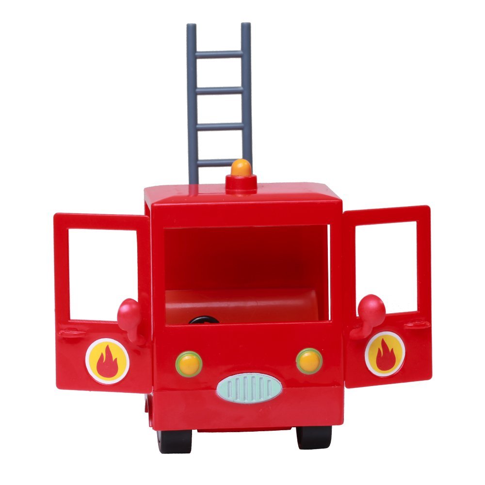 Peppa nie jest zwyczajną świnką – doskonale radzi sobie podczas zabaw na dworze, grania w różnorodne gry i uwielbia chlapać się w błotnistej kałuży. Tym razem postanowiła zostać strażakiem! Posłuży jej do tego świetny czerwony wóz strażacki posiadający skrętne koła, otwierane drzwi oraz ruchomą drabinę. Pomóż Peppie ocalić miasto przed pożarem! Wspólnie przezywajcie wspaniałe chwile zabawy!
