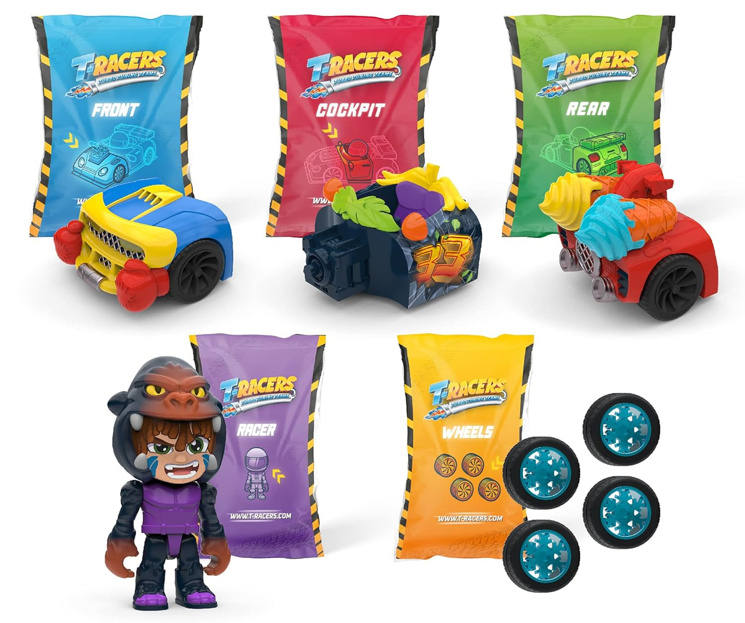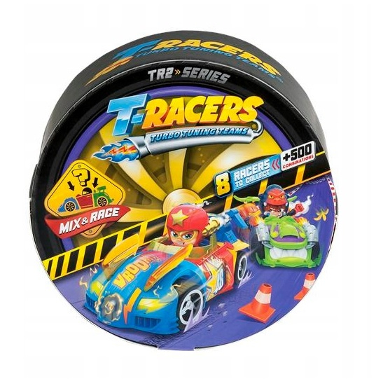 Poczuj dreszczyk emocji podczas wyścigów z T-Racers. Do zebrania jest 8 modeli samochodów i 8 figurek kierowców. Wewnątrz każdego turbo koła znajduje się 5 torebek-niespodzianek z częściami do zbudowania własnego pojazdu. Wszystkie części są wymienne z innymi T-Racerami, co pozwala na ponad 500 możliwych kombinacji!