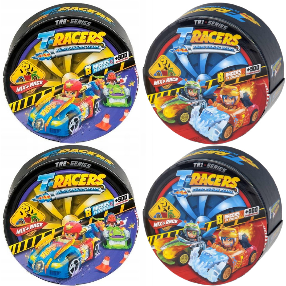 Poczuj dreszczyk emocji podczas wyścigów z T-Racers. Do zebrania jest 8 modeli samochodów i 8 figurek kierowców, zarówno w serii 1 jak i 2. Wewnątrz każdego turbo koła znajduje się 5 torebek-niespodzianek z częściami do zbudowania własnego pojazdu. Wszystkie części są wymienne z innymi T-Racerami, co pozwala na ponad 500 możliwych kombinacji!