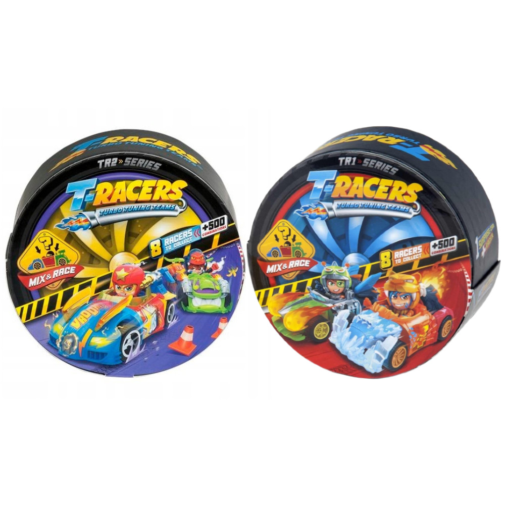 Poczuj dreszczyk emocji podczas wyścigów z T-Racers. Do zebrania jest 8 modeli samochodów i 8 figurek kierowców, zarówno w serii 1 jak i 2. Wewnątrz każdego turbo koła znajduje się 5 torebek-niespodzianek z częściami do zbudowania własnego pojazdu. Wszystkie części są wymienne z innymi T-Racerami, co pozwala na ponad 500 możliwych kombinacji!