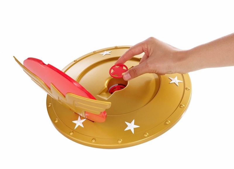Zainspirowane nową animowaną serią „DC Super Hero Girls” to akcesorium uzupełni strój każdej młodej kandydatki na superbohaterkę! Stworzoną na wzór Wonder Woman złotą tarczę można założyć na rękę, aby jeszcze pełniej wczuć się w rolę. Tarcza posiada wbudowaną wyrzutnię małych czerwonych gwiazdek, które możesz wystrzelić aż na 6 metrów. Z bohaterkami DC Super Hero szkolne obowiązki stają się wielką przygodą!