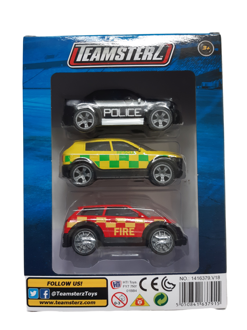 Teamsterz Metalowy Samochodzik Resorak 3-pak policja, ratunkowy i straż