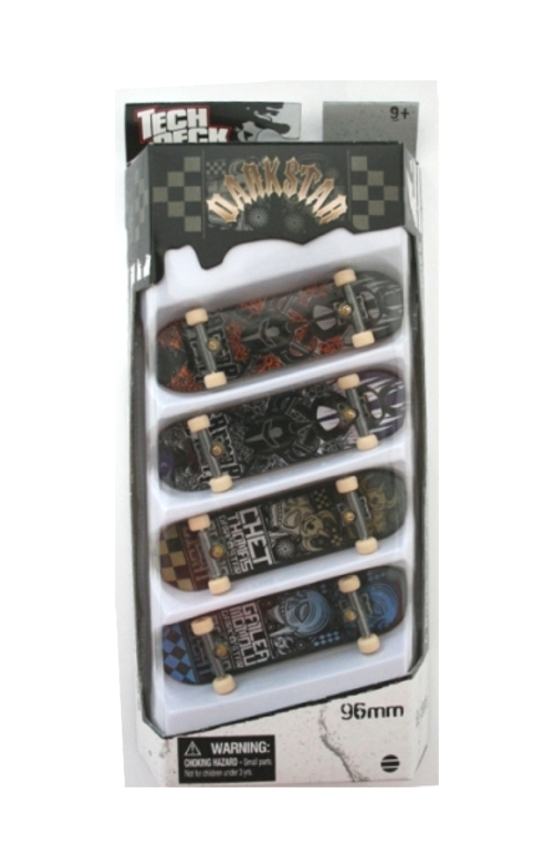 Zestaw Fingerboardów Tech Deck seria Dark Star. Dzięki nim poczujesz się jak prawdziwy zawodowiec, który ma do swojej dyspozycji, aż 4 kompletne modele desek. Każda jest inna, każda unikatowa! Wyposażone są w metalowe trucki, obracające się kółka oraz profilowany blat. Dodatkowo dołączony jest mały śrubokręt i podkładki pod traki. Całość uzupełniają oryginalne grafiki!