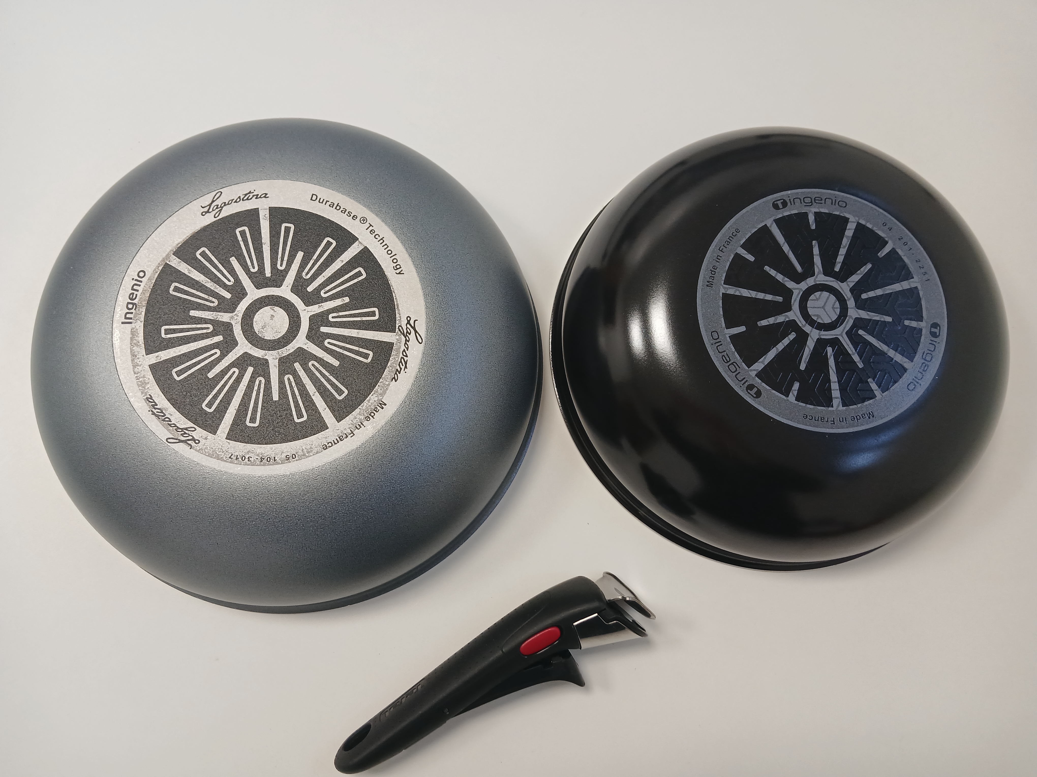 - oszczędzają 50% więcej miejsca w kuchni - układaj w stosy, jedno naczynie w drugie, dzięki odpinanej rączce,