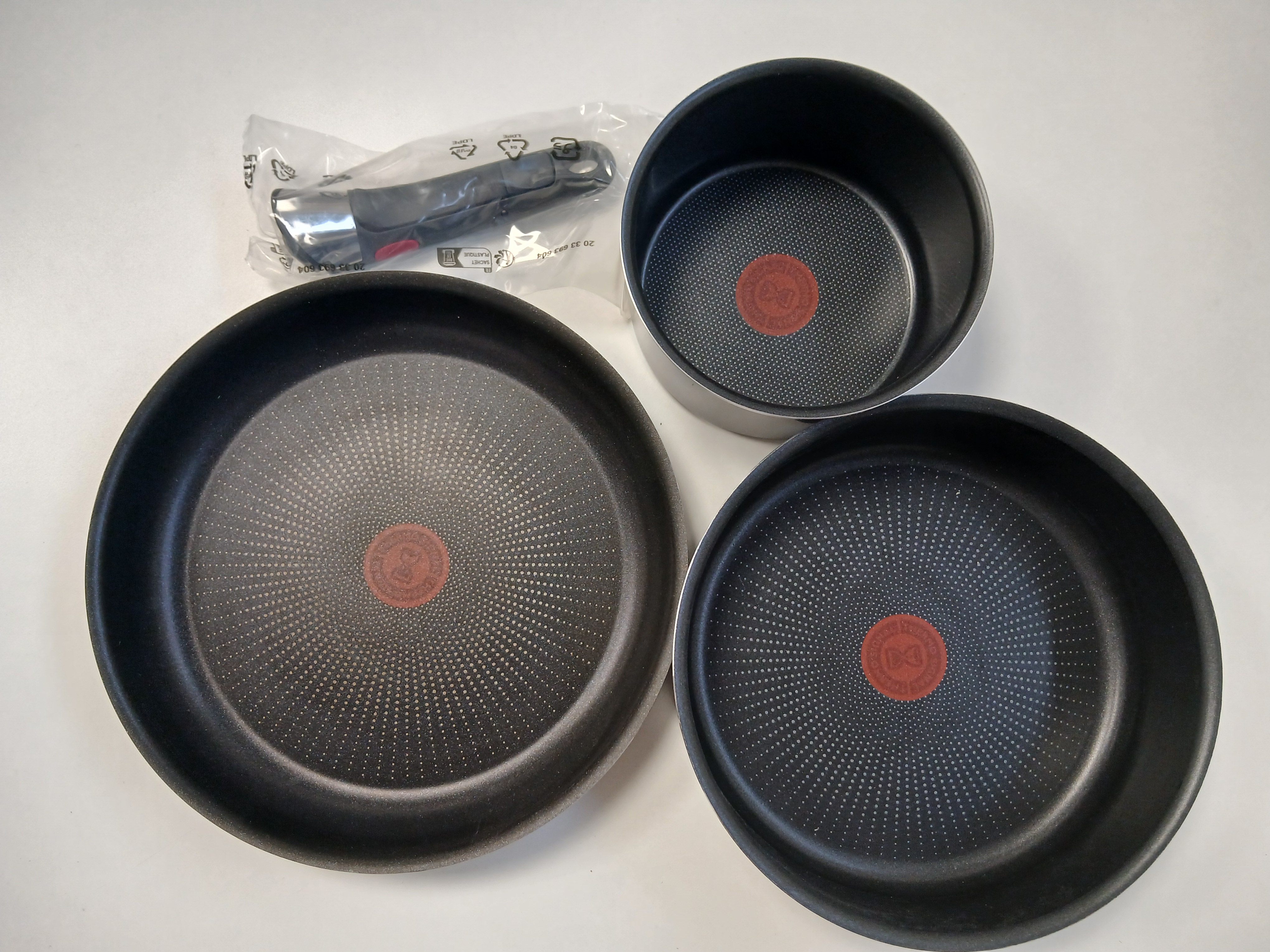 Tefal Ingenio Zestaw Patelnia 28 cm + Garnek + Garnek 16 cm + rączka GAZ- zestaw poprezentacyjny