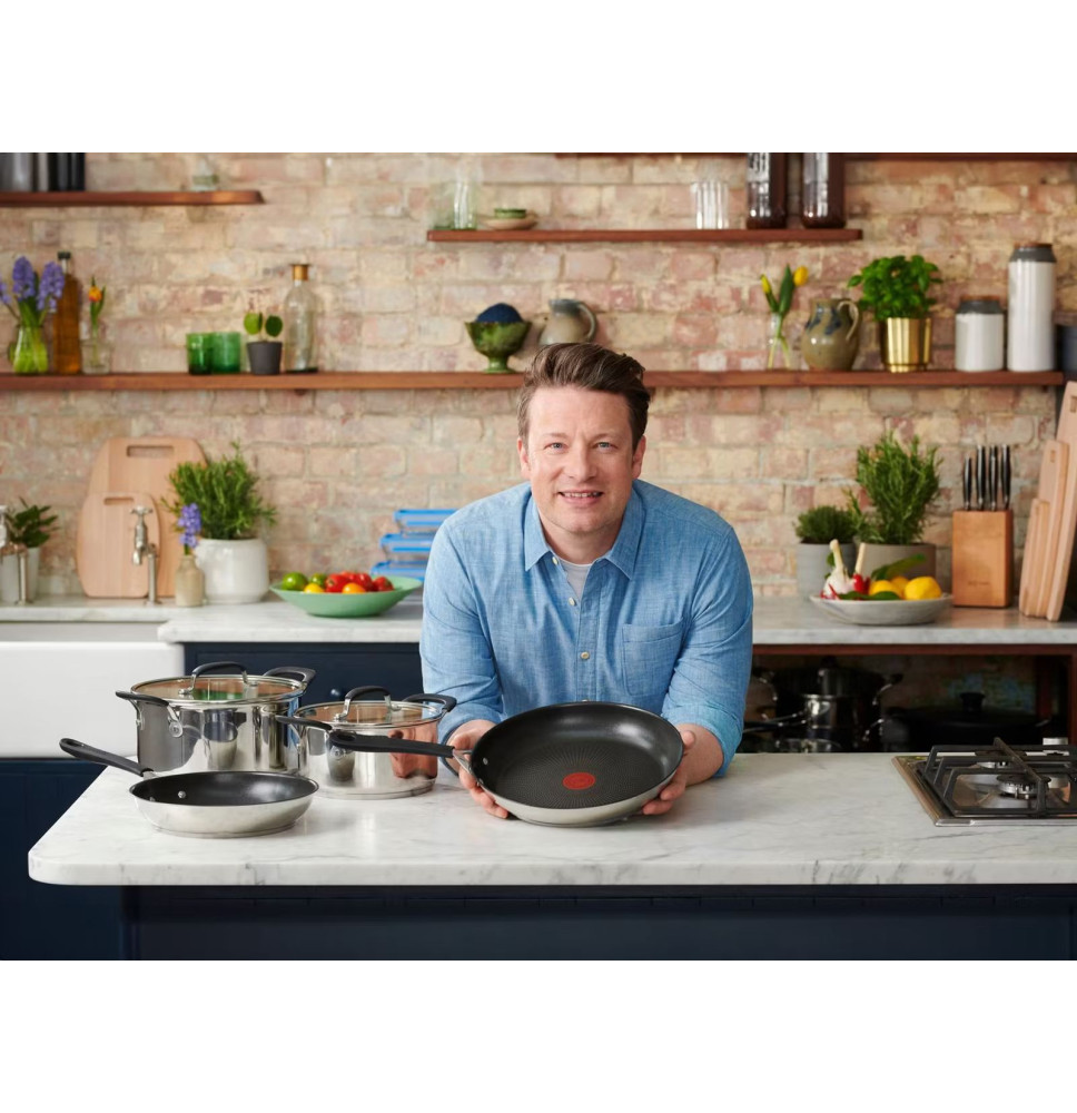 Zestaw garnków Jamie Oliver Stainless Steel od Tefal jest wykonany ze stali