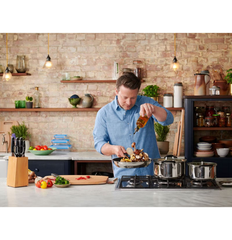 nierdzewnej i zaprojektowany przez Jamie Oliver. Trwałe garnki mają grubą