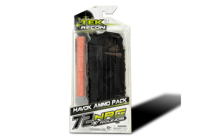 Wymienny magazynek do wyrzutni Tek Recon Havok wraz z 72 pociskami NRG. Magazynek pomieści 72 kółka NRG po 36 z każdej strony. Po wystrzeleniu 36 pocisków wystarczy go wysunąć i wsunąć drugą stroną, dzięki temu będziemy w stanie oddać kolejne 36 strzałów.