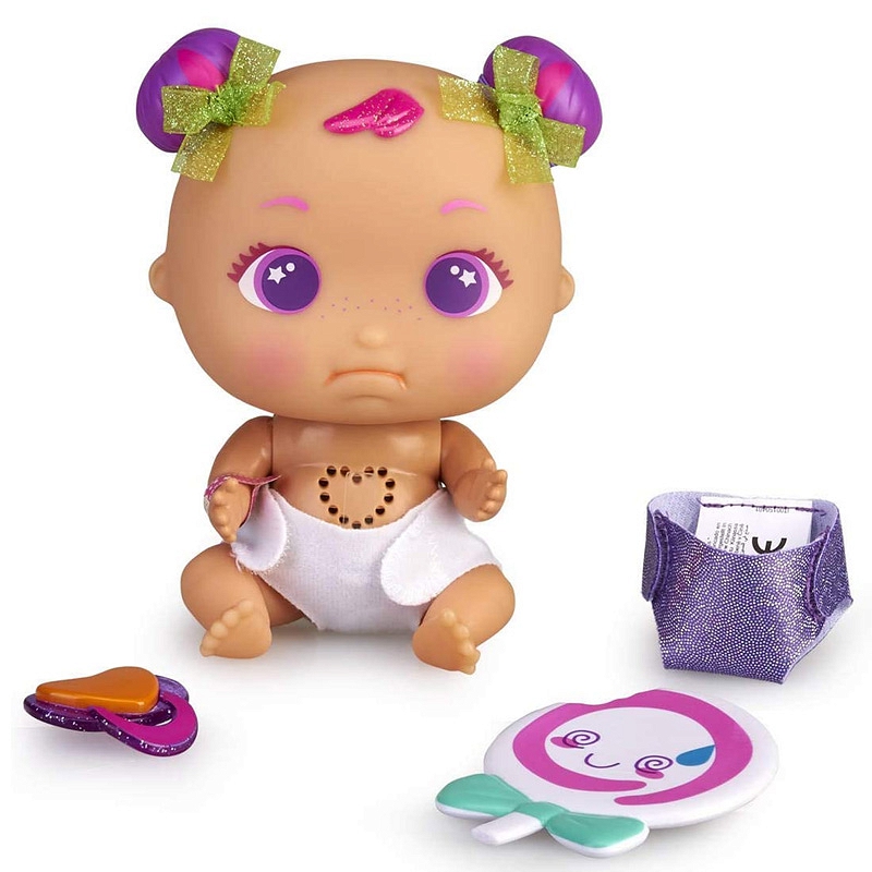 Bellie-Beth to śliczny interaktywny bobasek laleczka, która tylko czeka na to, by ktoś ją przytulił i pokochał. Każda dziewczynka pokocha prześliczne The Bellies. Zostań wspaniałą nianią i zaadoptuj wszystkie cztery laleczki. Laleczkę można nakarmić butelką, podać jej smoczek, zawinąć w kocyk lub przewinąć. Kiedy zdejmujesz plasterek z jej pępka, usłyszysz bicie małego serduszka, a Bellies natychmiast zaczynie gaworzyć. Każda z lalek robi to w inny, zabawny sposób. Zabawa laleczkami jest pełna niespodzianek: zdejmij pieluchę, a odkryjesz charakterystyczne znamię swojej Bellies: może to być gwiazdka lub serduszko, donat albo duszek. Ale to nie wszystko - jest jeszcze kolejna atrakcja, pieluszka skrywa zabawną niespodziankę. Sprawdź jej zawartość, następnie zobacz w Belliespedii co ona oznacza, aby dowiedzieć się, jakiej opieki potrzebuje Twoje dziecko.Taki bobasek to pierwsza okazja do rozwijania odpowiedzialności, opiekuńczości i empatii wobec drugiej osoby. Istnieje możliwość połączenia kilku laleczek ze sobą, aby zaczęły ze sobą rozmawiać.