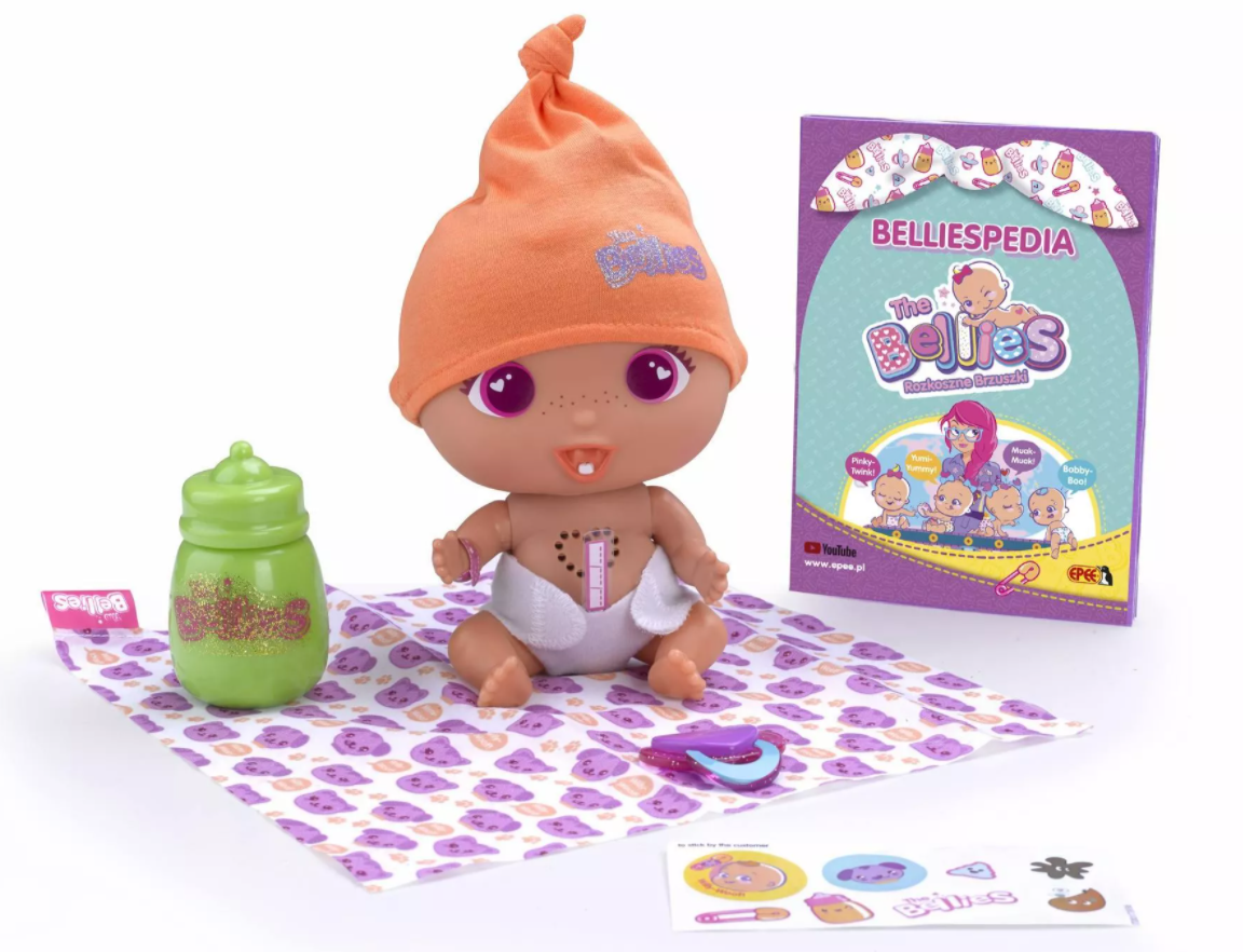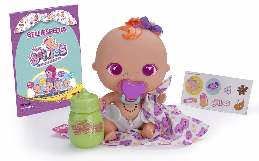Muak-Muak to śliczny interaktywny bobasek laleczka, która tylko czeka na to, by ktoś ją przytulił i pokochał. Każda dziewczynka pokocha prześliczne The Bellies. Zostań wspaniałą nianią i zaadoptuj wszystkie cztery laleczki: Pinky-Twink, Yumi-Yummy, Muak-Muak i Bobby-Boo. W opiece nad laleczką pomoże Ci Encyklopedia Kupek dołączona do zestawu. Kiedy maluszek zrobi kupkę, spójrz w encyklopedię i dowiedz się czego mu potrzeba. Laleczkę można nakarmić butelką, podać jej smoczek, zawinąć w kocyk lub przewinąć. Taki bobasek to pierwsza okazja do rozwijania odpowiedzialności, opiekuńczości i empatii wobec drugiej osoby. Istnieje możliwość połączenia kilku laleczek ze sobą, aby zaczęły ze sobą rozmawiać.