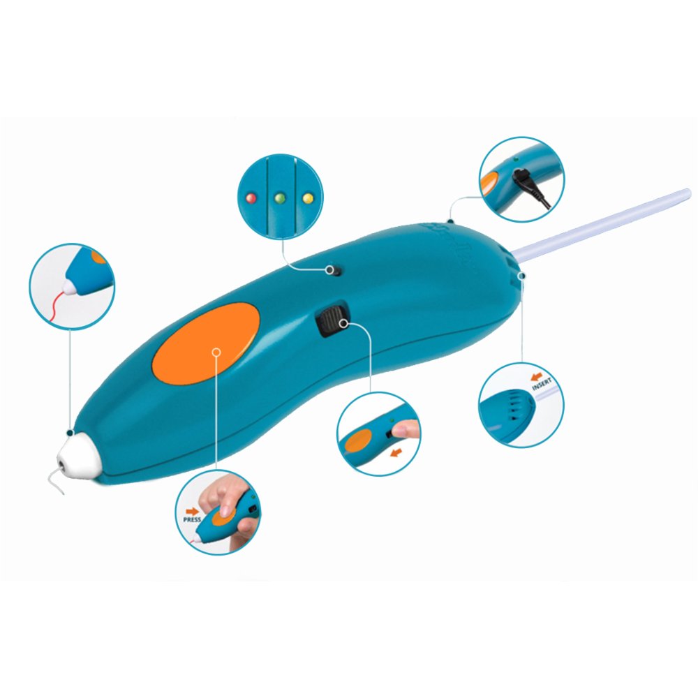 Długopis do drukowania 3D jest bezpieczny dla dzieci – materiał używany do pracy jest ciepły, ale nie gorący! Wypływający materiał wystyga i twardnieje bardzo szybko, pozwalając dziecku na rysowanie w przestrzeni! Daje to nieograniczona ilość możliwości na tworzenie wymyślonych przez młodych projektantów przedmiotów.