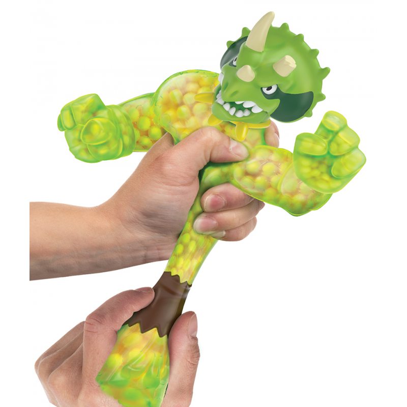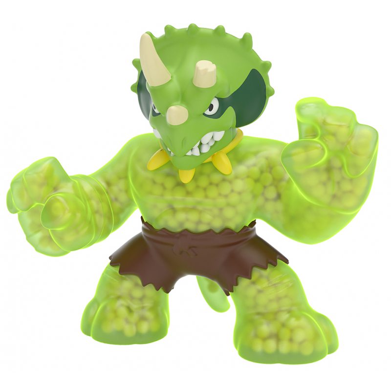 Rozciągliwa Figurka Dino Triceratops Tritops to wojownik o niebywałej sile i chwytnych łapach. Triceratops podczas walki używa także swoich mocnych szczęk, którymi kąsa swoich przeciwników (ruchoma szczęka). Jego ciało jest wypełnione imitacją skrzypiących kamieni. Kończyny wojownika potrafią rozciągnąć się trzykrotnie i powrócić do swojej pierwotnej formy.