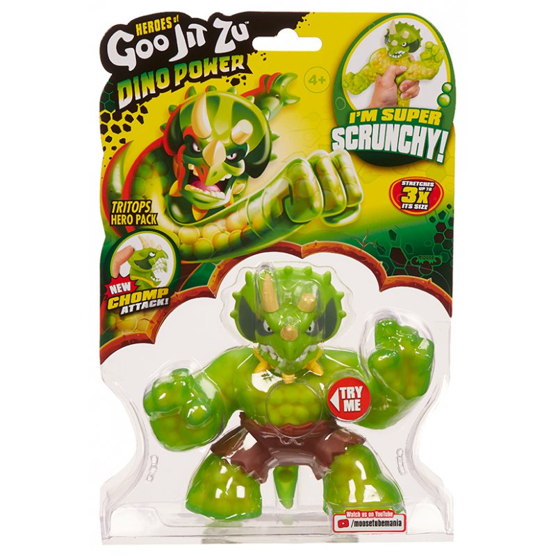 Goo Jit Zu to zabawni bohaterowie stworzeni specjalnie z myślą o dzieciach, które uwielbiają eksplorować świat i swoje otoczenie. Figurki Goo Jit Zu można zgniatać, rozciągać, skręcać i odkształcać, a one zawsze wrócą do swojej pierwotnej postaci. Każdy bohater posiada tajemniczą moc – wypełnienie różnymi strukturami (m.in. piasek, slime, kostki), które pobudza dziecięce zmysły. Goo Jit Zu to kolorowi, megarozciągliwi bohaterowie o zabawnych imionach nawiązujących do rodzaju postaci, jak między innymi Thrash the Megalodon Shark, Ultra Rare Braxor czy Scorpius. Każdy bohater jest inny, dlatego warto zdobyć wszystkie postacie z unikalnej kolekcji!