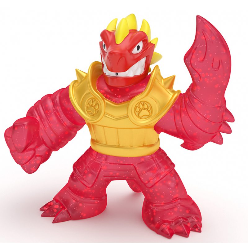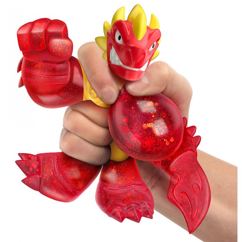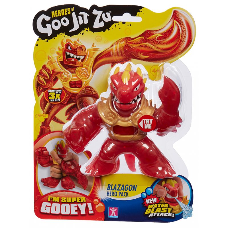 Rozciągliwa Figurka Dragon Blazagon to ognisty smok, który wypełniony jest drobinami brokatu imitującego światło ognia i żelem, dzięki czemu jest elastyczny i zwinny. Jego dodatkową umiejętnością jest atak podmuchem wody, który powala przeciwnika. Kończyny wojownika potrafią rozciągnąć się trzykrotnie i powrócić do swojej pierwotnej formy.