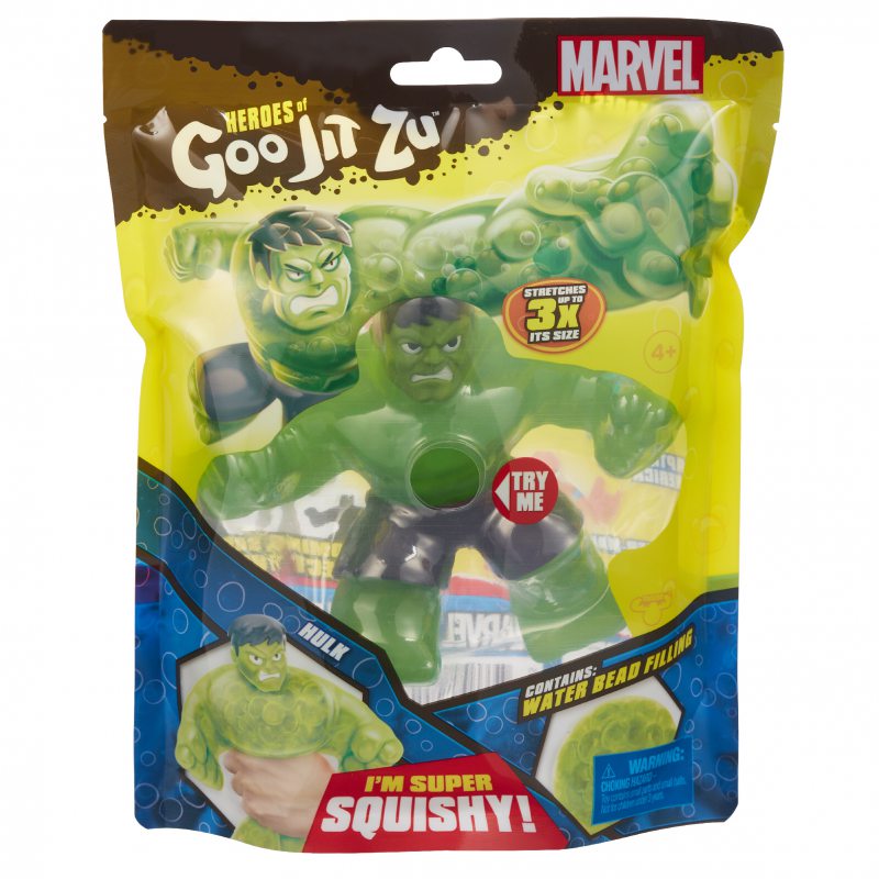 Hulk to super silny bohater uniwersum Marvela. Wypełniony wodnymi kuleczkami jest gotowy aby stanąć do walki! Ściśnij jego zielone ciało i zobacz jak slime wypycha się, ukazując unikatowe wypełnienie! Jest też mega rozciągliwy, można wydłużać jego nogi i ręce trzykrotnie ale zawsze wróci do swojego pierwotnego kształtu! Hulk jest gotowy aby przy pomocy swojej siły przywrócić porządek na świecie! Zbierz wszystkich bohaterów z kolekcji Goo Jit Zu Marvel i stocz pełną emocji walkę!