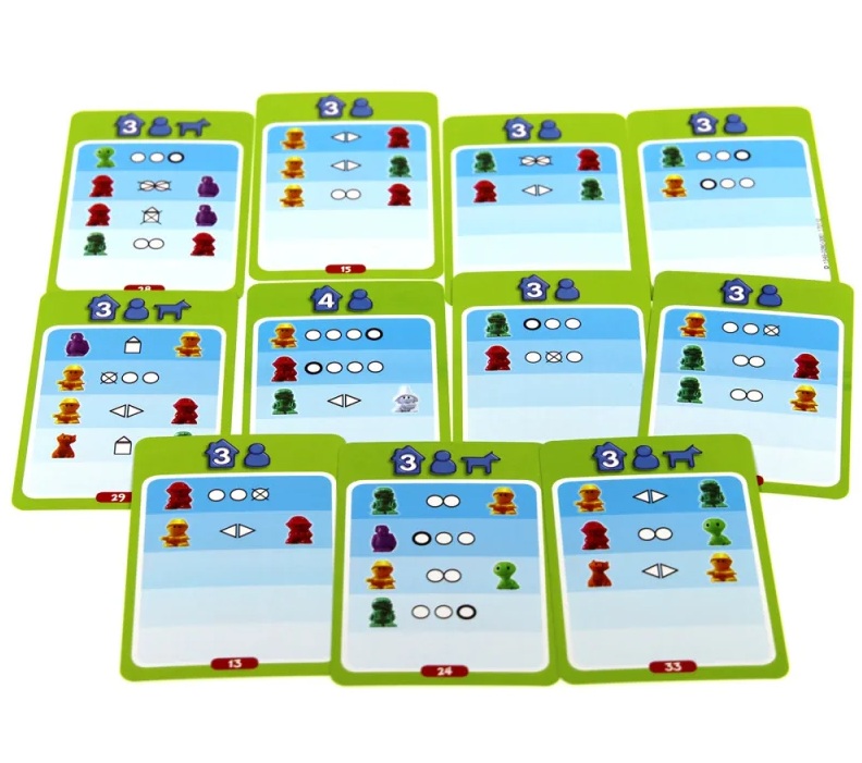 Podpowiedzi są pokazywane w formie prostych symboli, opracowanych specjalnie po to, aby a łatwy sposób rozwijać umiejętności logicznego myślenia i rozwiązywania problemów, przy czym nie wymagają umiejętności czytania. Korzystanie z podpowiedzi zachęca do rozróżnienia pomiędzy istotnymi, a drugorzędnymi informacjami. Krok po kroku, pracując kreatywnie, stopniowo opanujesz procesy logicznej dedukcji, jednocześnie bawiąc się. Uważasz, że zagadka jest rozwiązana? Rozwiązanie znajdziesz na odwrocie karty: czy wszyscy są na właściwych miejscach?