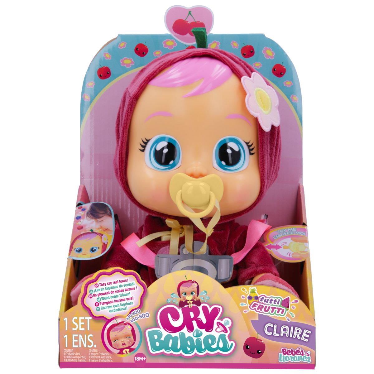 Claire reprezentuje owoc soczystej wisieńki. Lalki Cry Babies zachowują się jak prawdziwe bobasy! Płaczą prawdziwymi łzami imitując przy tym płacz dziecka (z tyłu głowy znajduje się pojemnik na wodę). Nowa seria to owocowy zawrót głowy, lalki swoimi piżamkami nawiązują do owoców: truskawki, arbuza, ananasa, banana, wiśni oraz jeżyny, przez co wyglądają niesamowicie! Dodatkowo każda z nich ma swój dedykowany owocowy zapach.