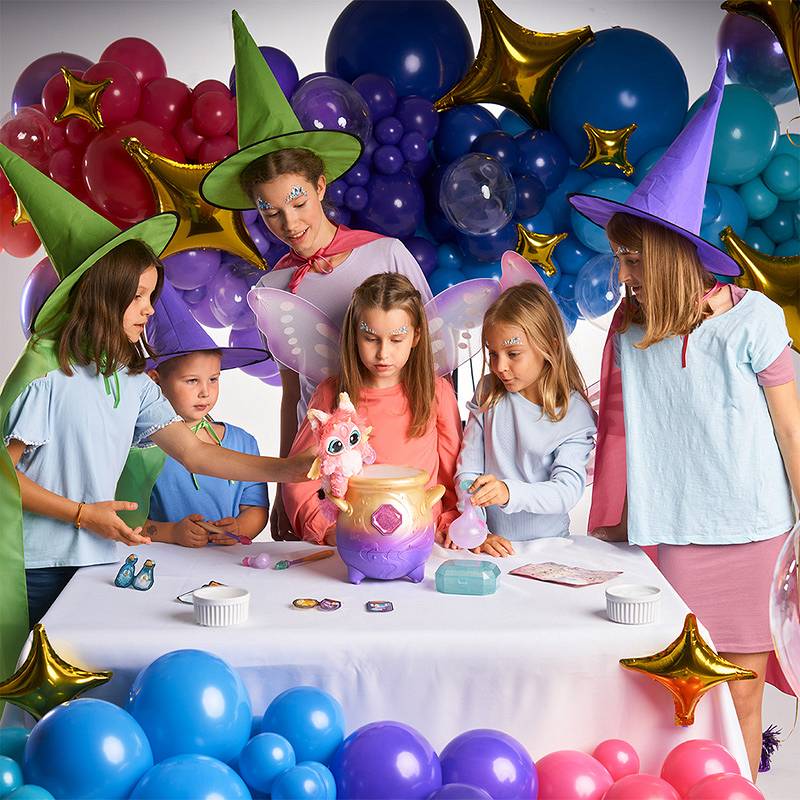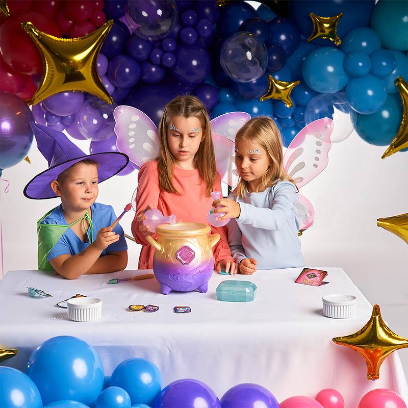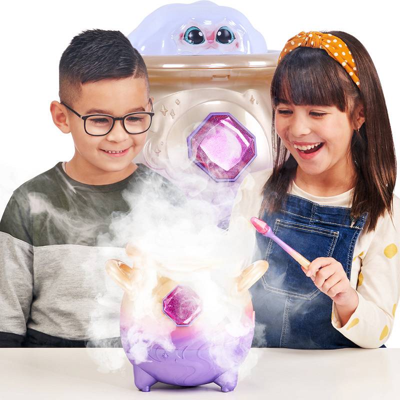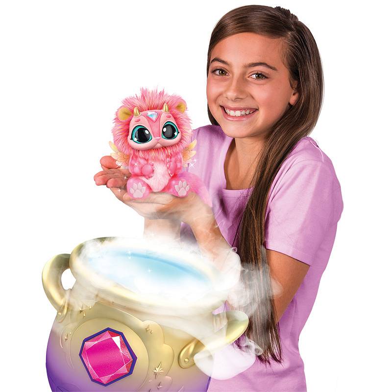 Zaangażuj się w magiczną zabawę wraz z dzieckiem. Czy przypominasz sobie chwile dzieciństwa, gdy jedną z ulubionych zabaw było sporządzanie magicznych eliksirów ze wszystkich, znalezionych produktów? Dziś nie trzeba już szukać składników. Wyczaruj wraz z dzieckiem niezwykły eliksir. Wystarczy umieścić w magicznym kociołku składniki mikstury i zaczekać, aż pojawi się niezwykle prezentująca się, wprowadzająca nastrój magii mgła. Wasza mikstura, złożona z wielu, niezwykłych składników odkryje coś niebywałego! Zajrzyj do środka… W naczyniu znajduje się wytwór wyobraźni - wspaniały, pluszowy przyjaciel, który powstał dzięki Tobie! Reaguje na każde dotknięcie magicznej różdżki – dzięki czemu zabawa nie ma końca!