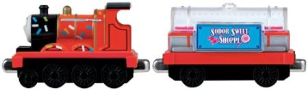 Asortyment lokomotyw z wagonikami z bajki Tomek i Przyjaciele, lubianej przez przedszkolaki. Lokomotywy łączą się z wagonikami za pomocą magnetycznych sprzęgów. Pasują do zestawów przenośnych. Każdy zestaw zawiera jedną lokomotywę oraz trzy wagoniki.