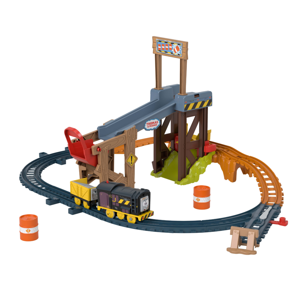 Dzięki napędzanemu silnikiem pociągowi zabawa nabiera tempa – wystarczy przesunąć przełącznik, aby Diesel ruszył po torach i rozpoczął pracę na budowie. Interaktywne elementy, takie jak winda towarowa i zjeżdżalnia, umożliwiają załadunek i rozładunek beczek, tworząc realistyczne i angażujące scenariusze zabawy.